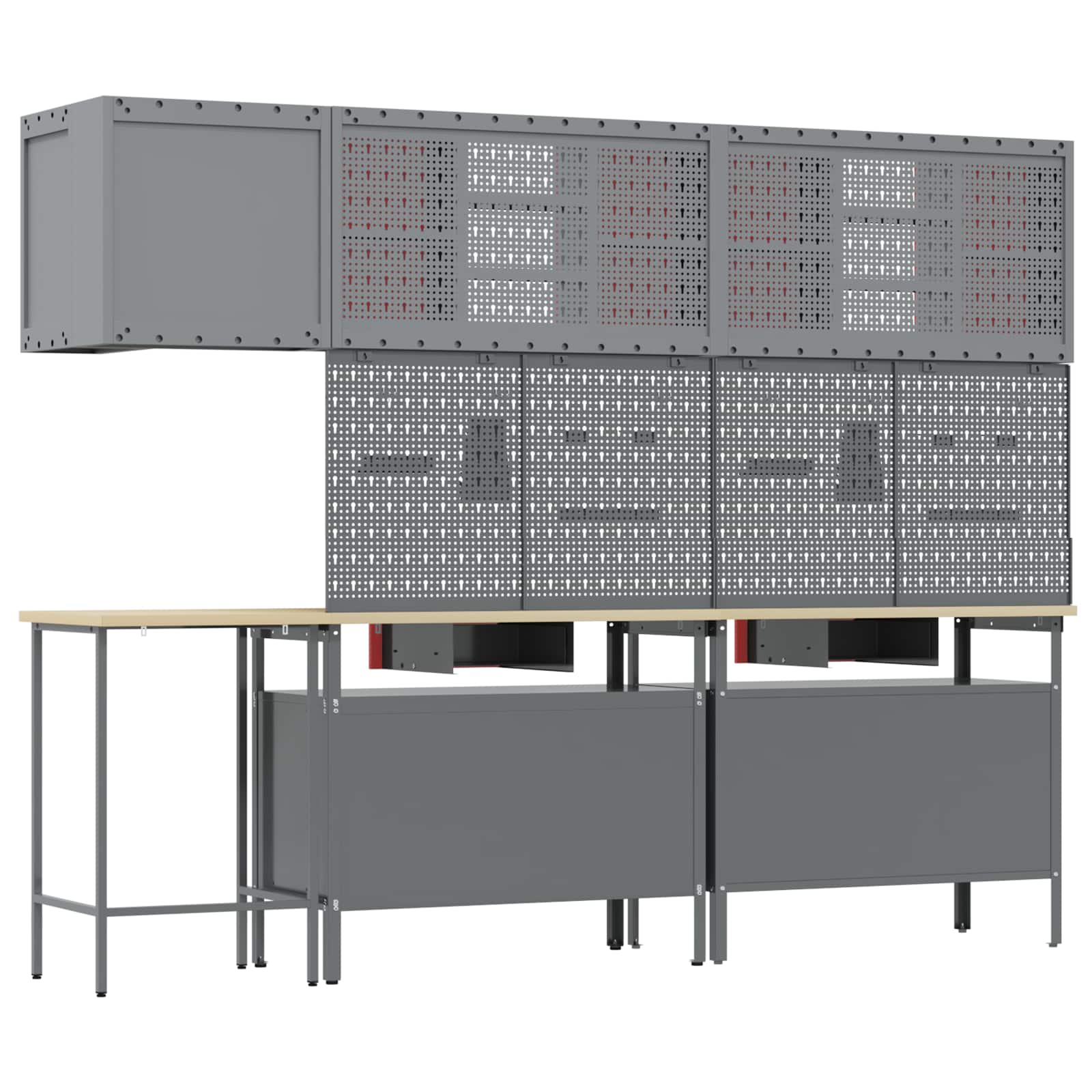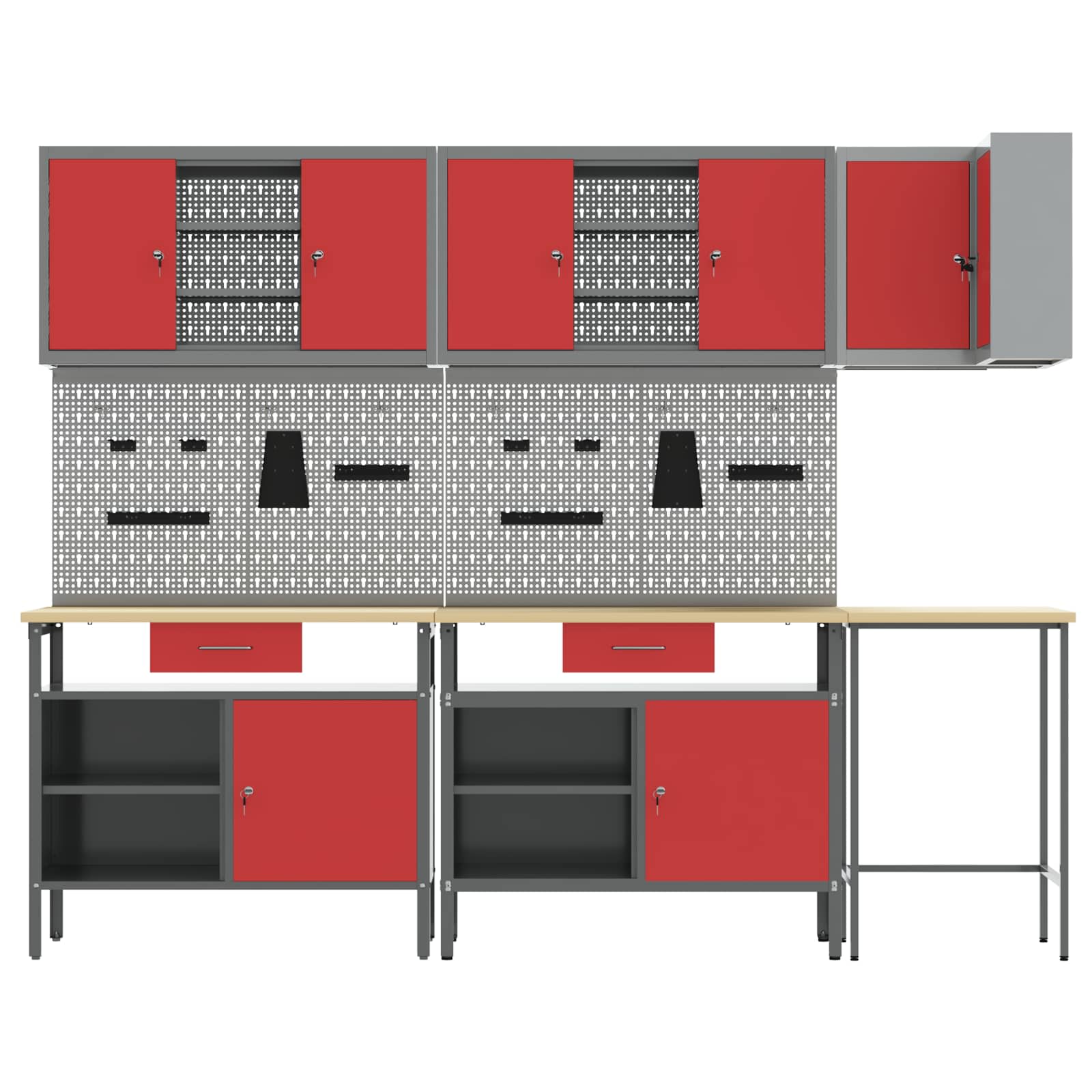 Set de dulapuri de lucru cu sertar cu raft 10 pcs Roșu și gri GartenMobel Dekor