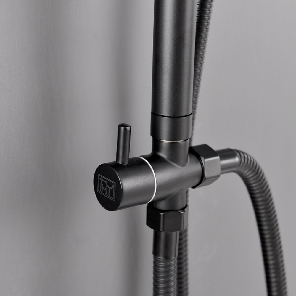 Set de duș Leziter Altar Black, negru mat, cu duș tip ploaie, fără baterie