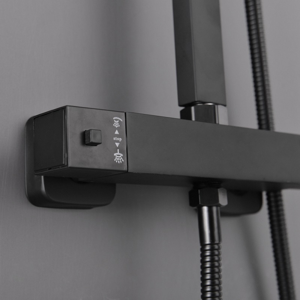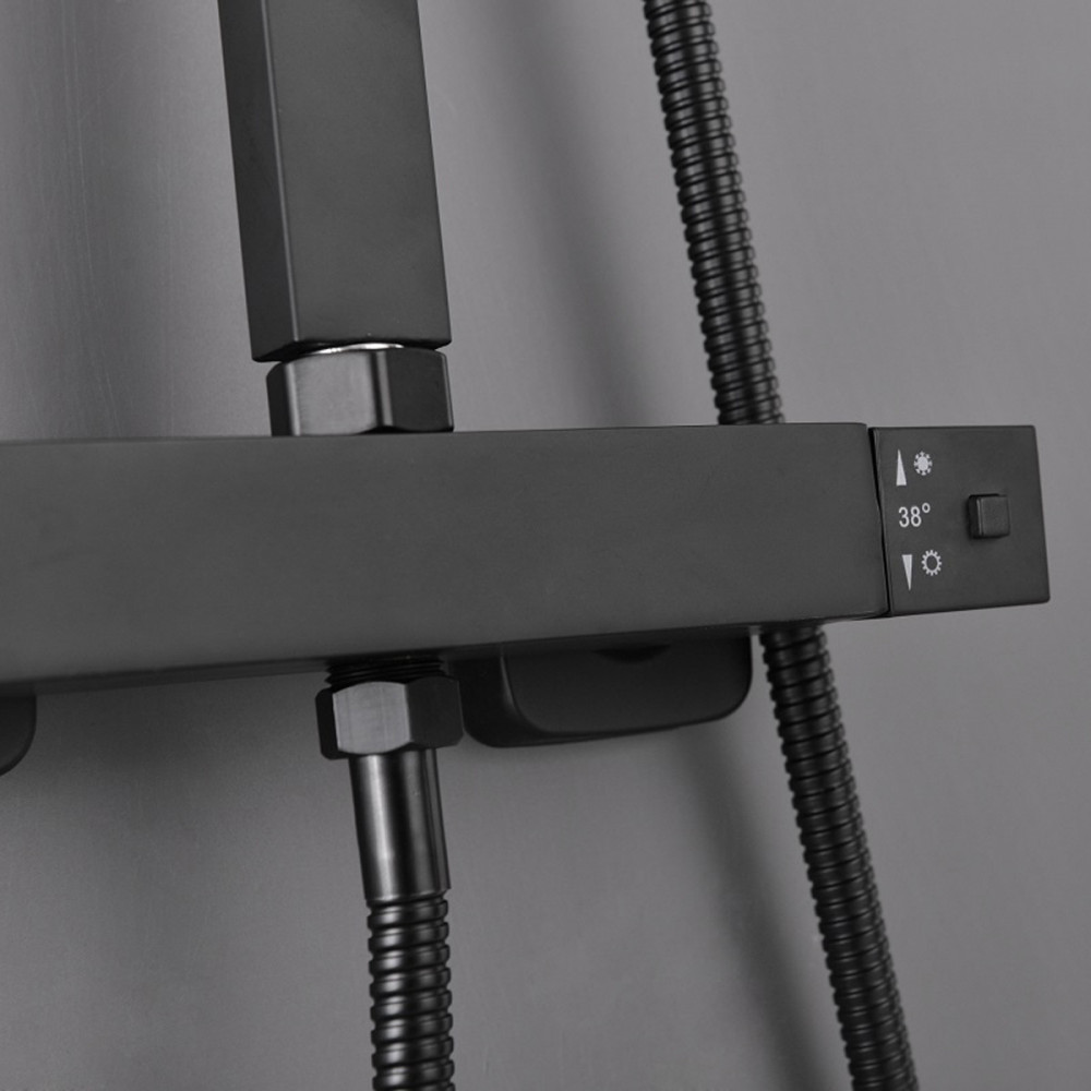 Finisajul negru mat și liniile drepte se potrivesc perfect în băile contemporane, iar componentele sunt gândite pentru utilizare practică și durabilitate. Duzele cu acoperire din silicon ajută la reducerea depunerilor de calcar, pentru întreținere mai ușoară.