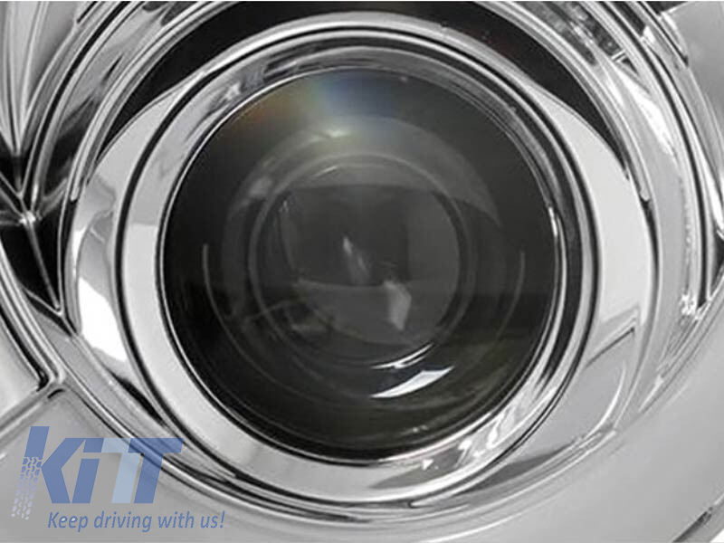 Set de faruri de tuning cu lumini LED potrivit pentru Jeep Grand Cherokee 2005-2008 cu bază cromată, stânga și dreapta Performance AutoTuning