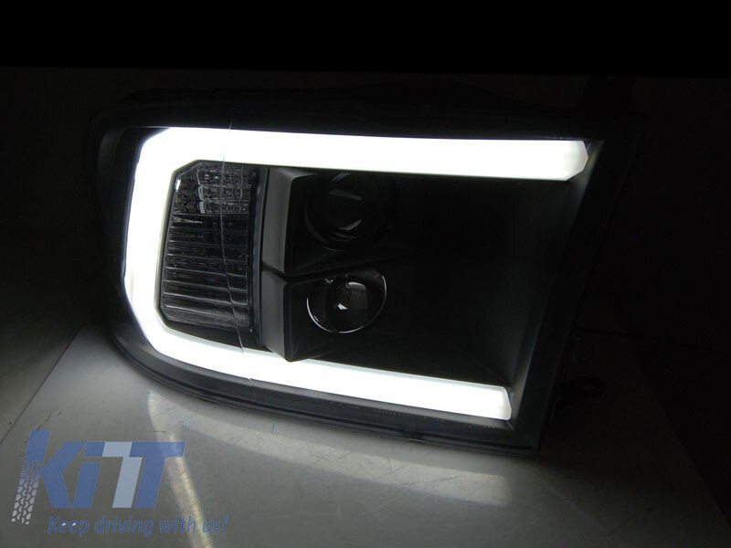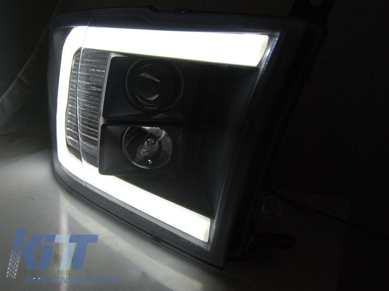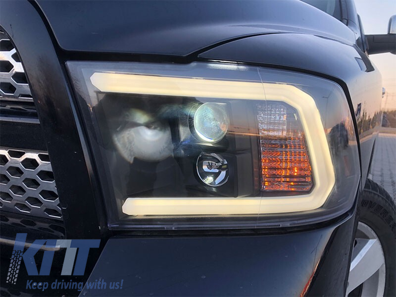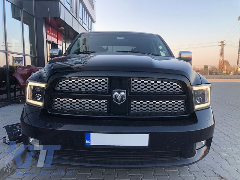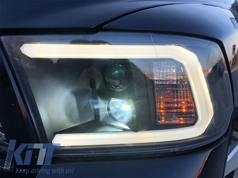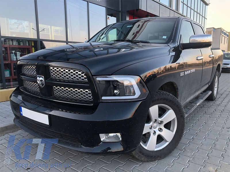 Set de faruri de tuning potrivit pentru Dodge Ram 2009-2018 cu bază neagră, stânga și dreapta Performance AutoTuning