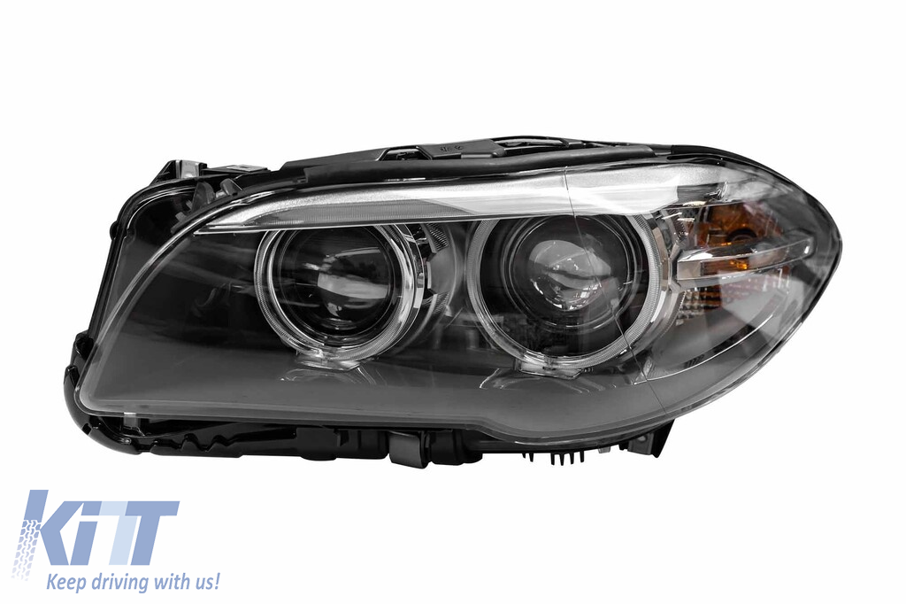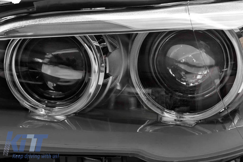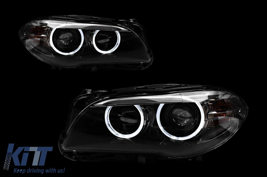 Set de faruri xenon tip LCI potrivit pentru BMW Seria 5 F10 sedan, F11 touring 2010-2013 cu bază neagră pentru modelele cu faruri xenon din fabrică Performance AutoTuning