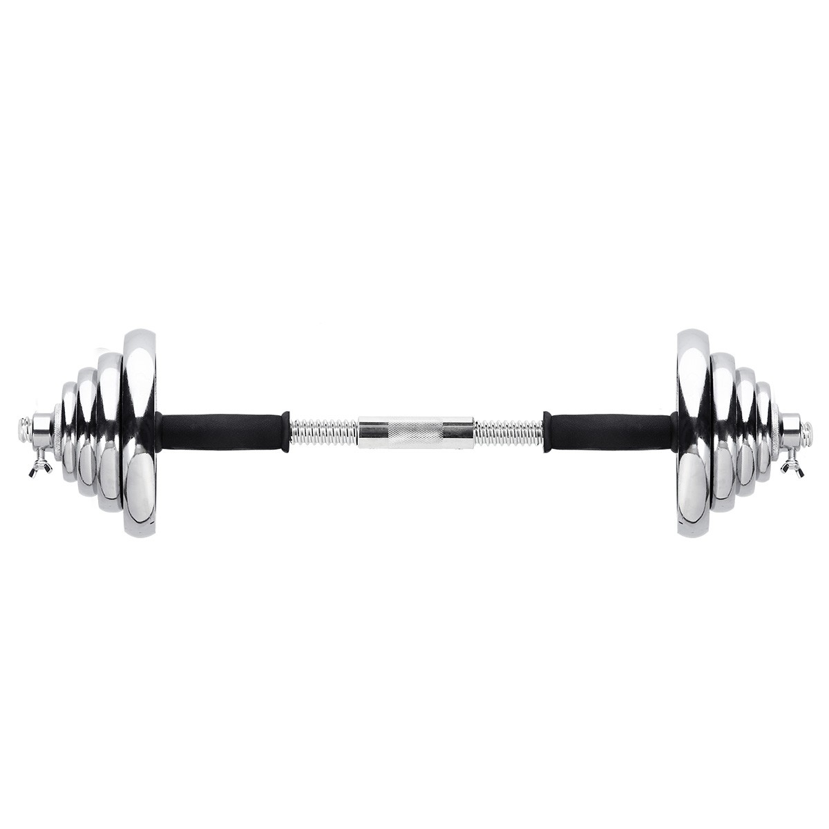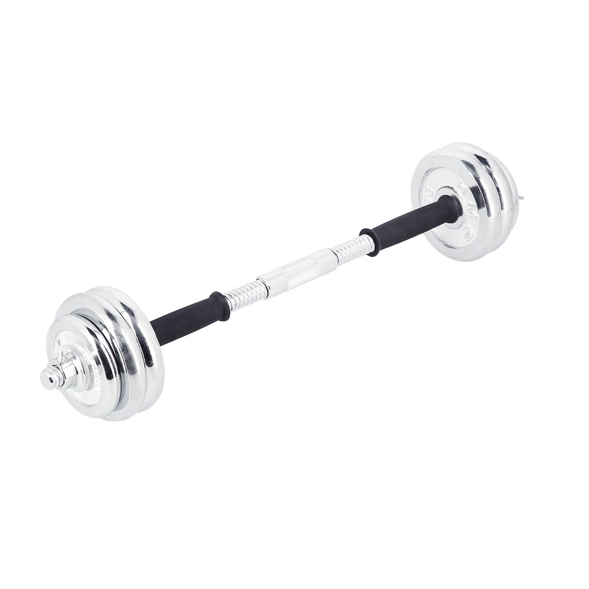 Haltera cu sarcina interschimbabila este un clasic si o necesitate pentru fiecare sala de gimnastica de acasa. In combinatie cu ganterele, ofera nenumarate posibilitati de exercitii.