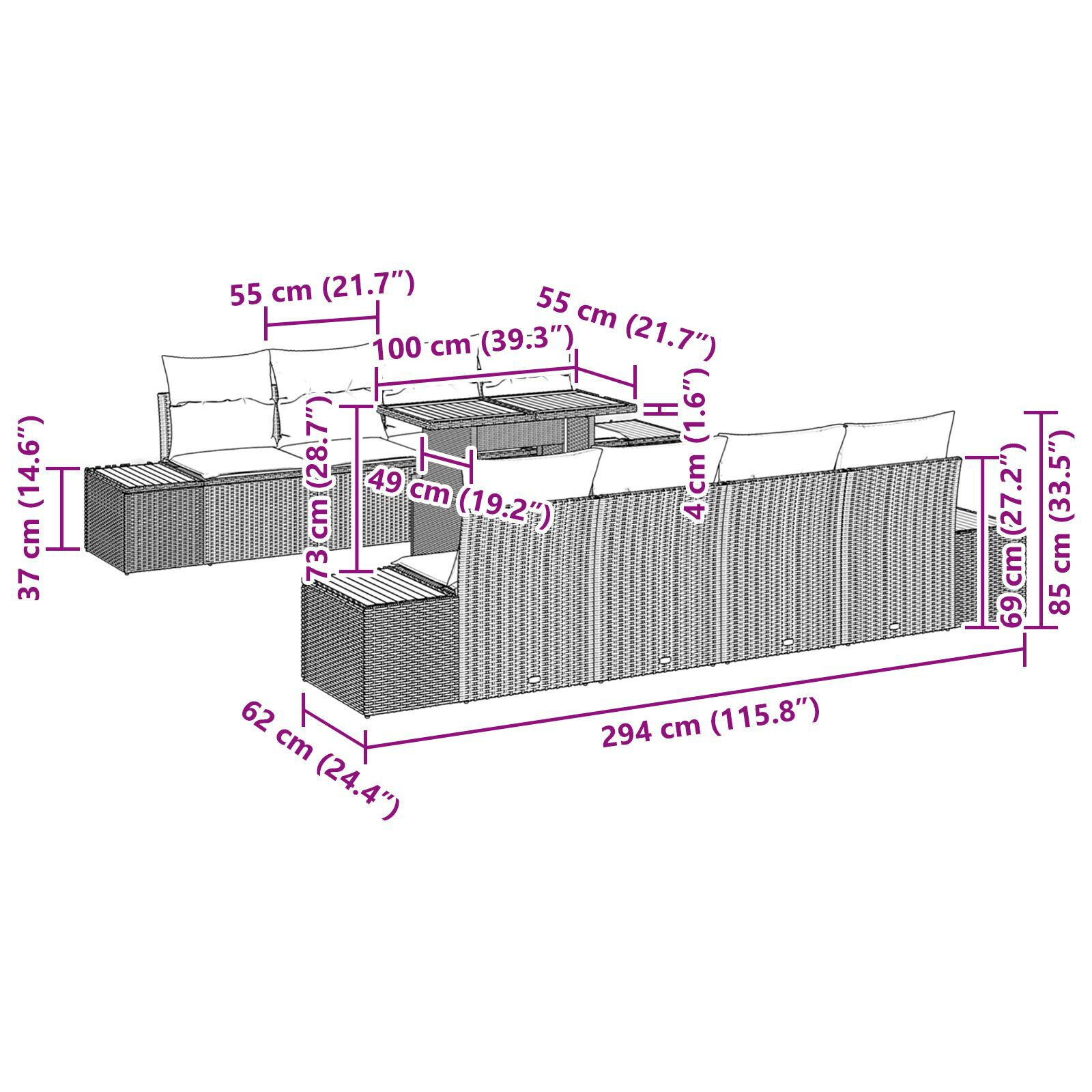 - Livrarea Conține: 4 x Canapea laterală cu funcție de stocare, 4 x Canapea Centrală cu funcție de stocare, 1 x Masă de Grădină