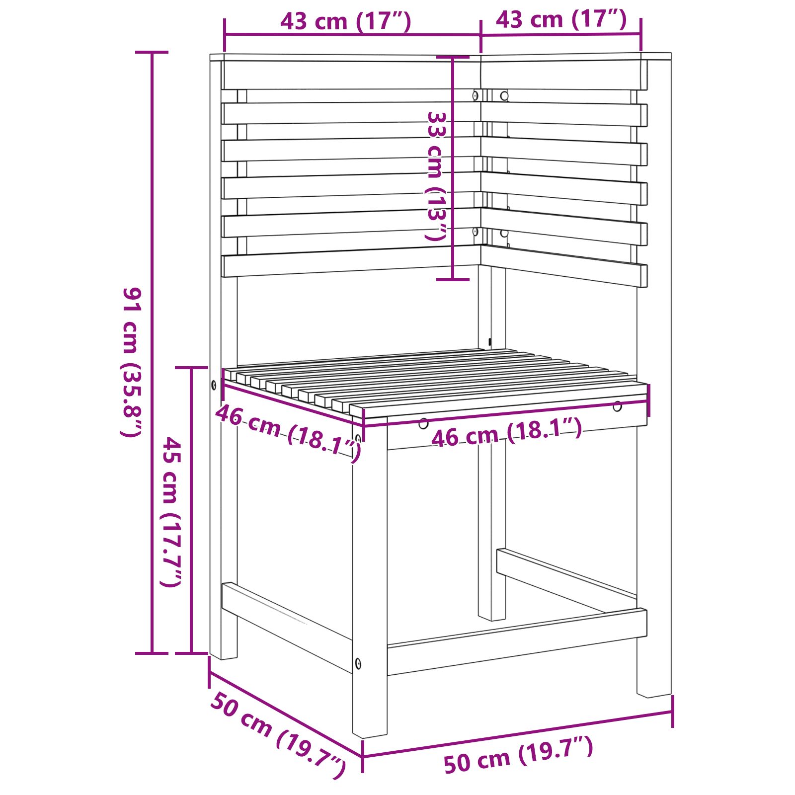 - Material: Lemn masiv de acacia
