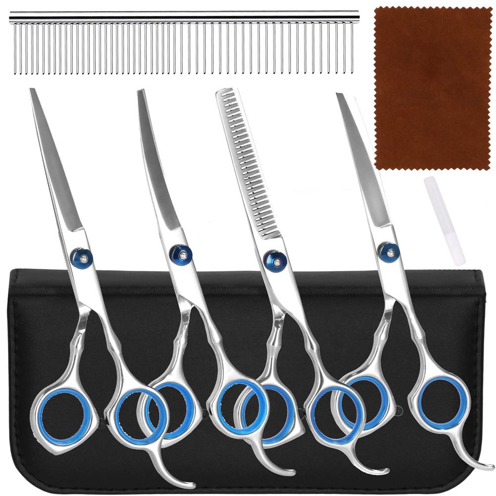 Set de ingrijire pentru animale de companie, cu 4 foarfece pentru tuns si accesorii Household NewTrend