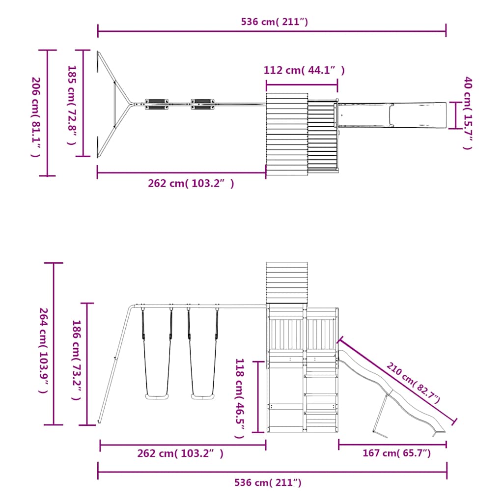 - Centre de activități multiple: Setul de joacă din lemn are o platformă de 118 cm înălțime și se remarcă prin toboganul său vălurit, un leagăn dublu, precum și printr-o groapă de nisip. Micuții dvs. își pot invita și prietenii să se alăture distracției.