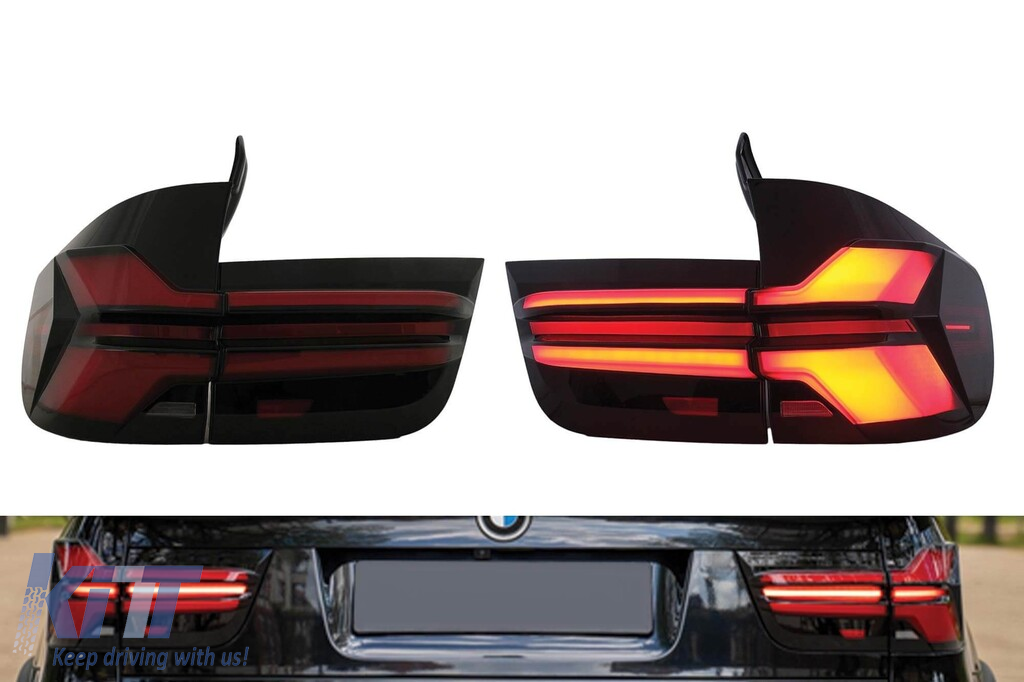 Set de lumini spate LED de tuning cu stilizare G05 LCI, potrivit pentru BMW X5 E70 2007-2013, stânga și dreapta, bază fumurie roșie Performance AutoTuning