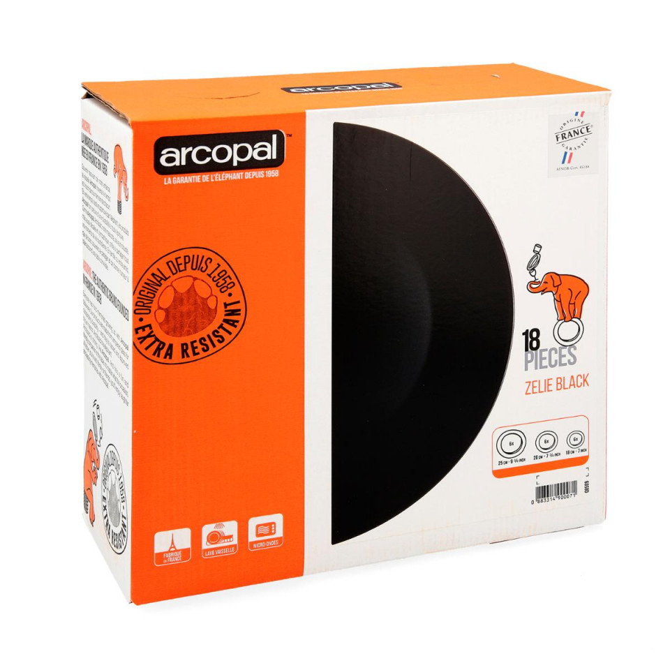 Set de masă Arcopal Zelie Black, 18 piese din sticlă opal, negru elegant