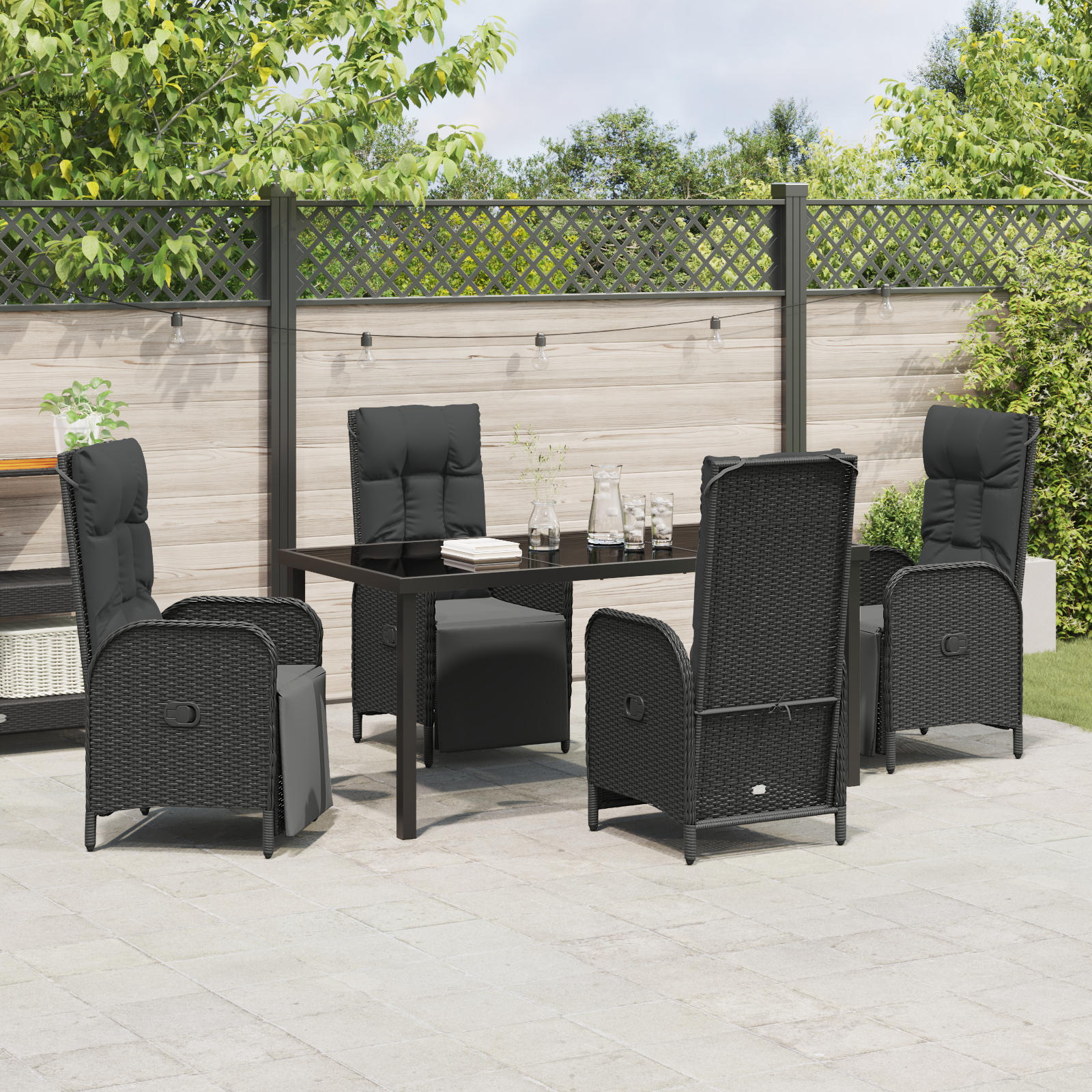 Set de masă de grădină 5 piese cu perne Negru Poliratan GartenMobel Dekor