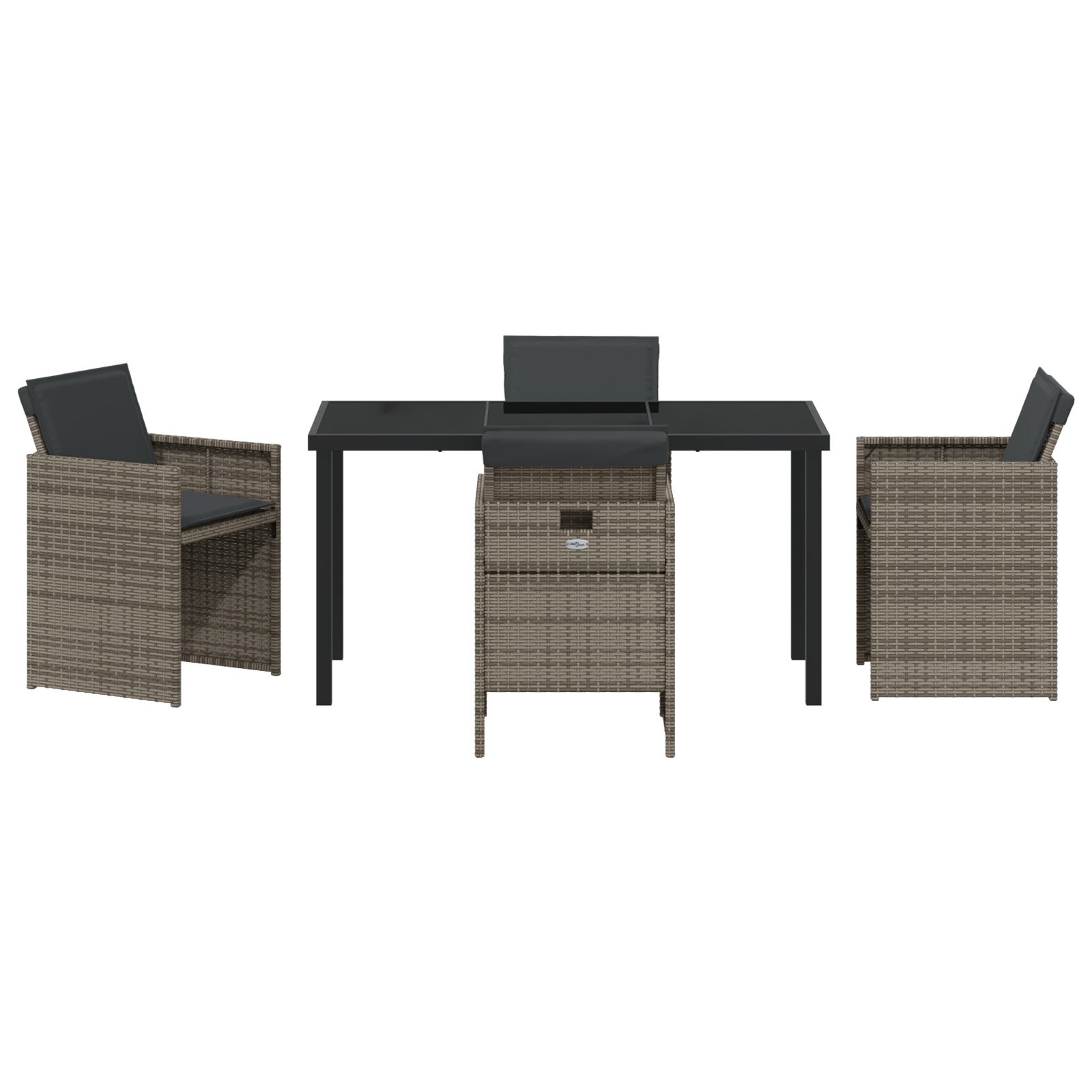 Set de Masă de Grădină cu Perne Gri Poliratan, Masă de Grădină Neagră 140x80x73 cm Sticlă Securizată GartenMobel Dekor