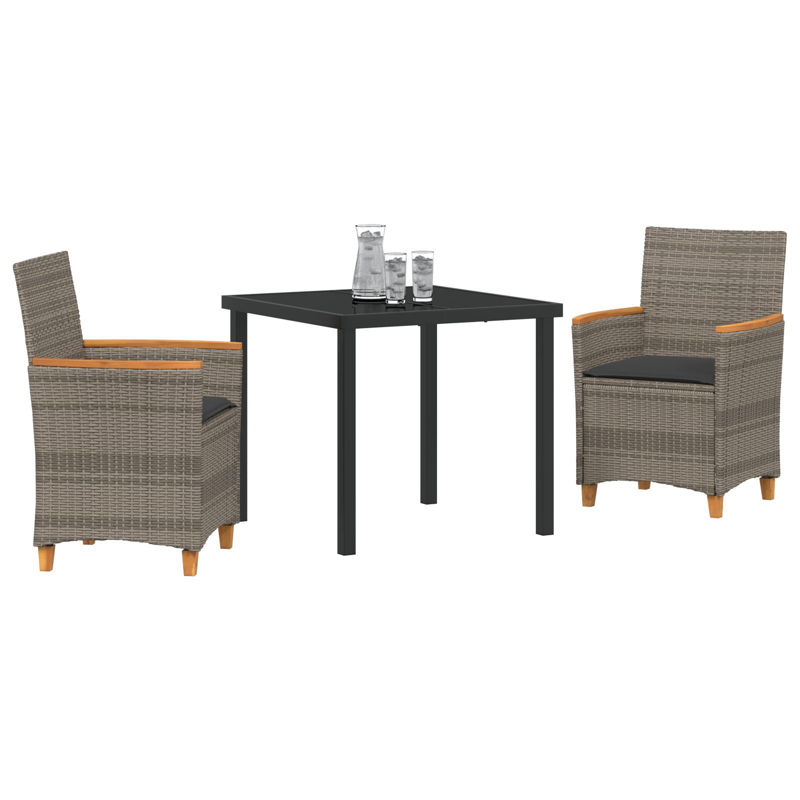 Set de Masă de Grădină de 3 Piese cu Perne Gri din Rattan PE GartenMobel Dekor