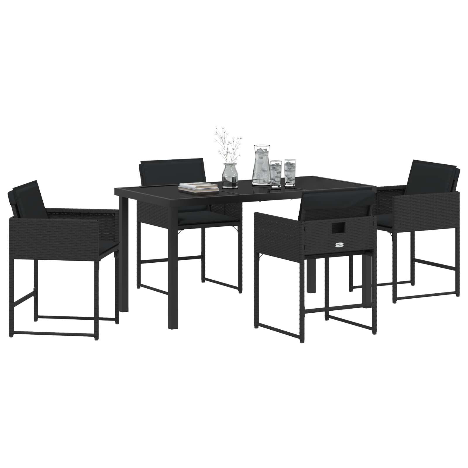 Set de Masă în Grădină cu Pernă Neagră din Ratan PE GartenMobel Dekor