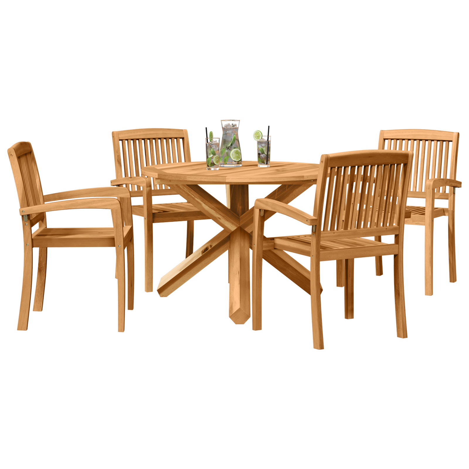 Acest set de dining are câteva caracteristici super:- Fabricat din lemn rezistent la apă, deci e durabil și ușor de întreținut, chiar și când vremea nu e prietenoasă.
