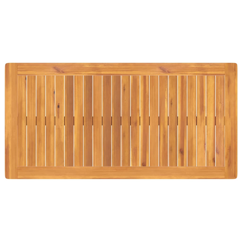 - Materiale: Făcut din lemn masiv de acacia, fiecare parte din acest set de dining arată granulația bogată a lemnului. Acest lemn nu e doar puternic, dar are și un aspect atrăgător, fiind perfect pentru mobilier ce îmbină stilul cu durabilitatea. Rezistența sa la umezeală îl face ideal pentru afară, oferind frumusețe de lungă durată în grădină.