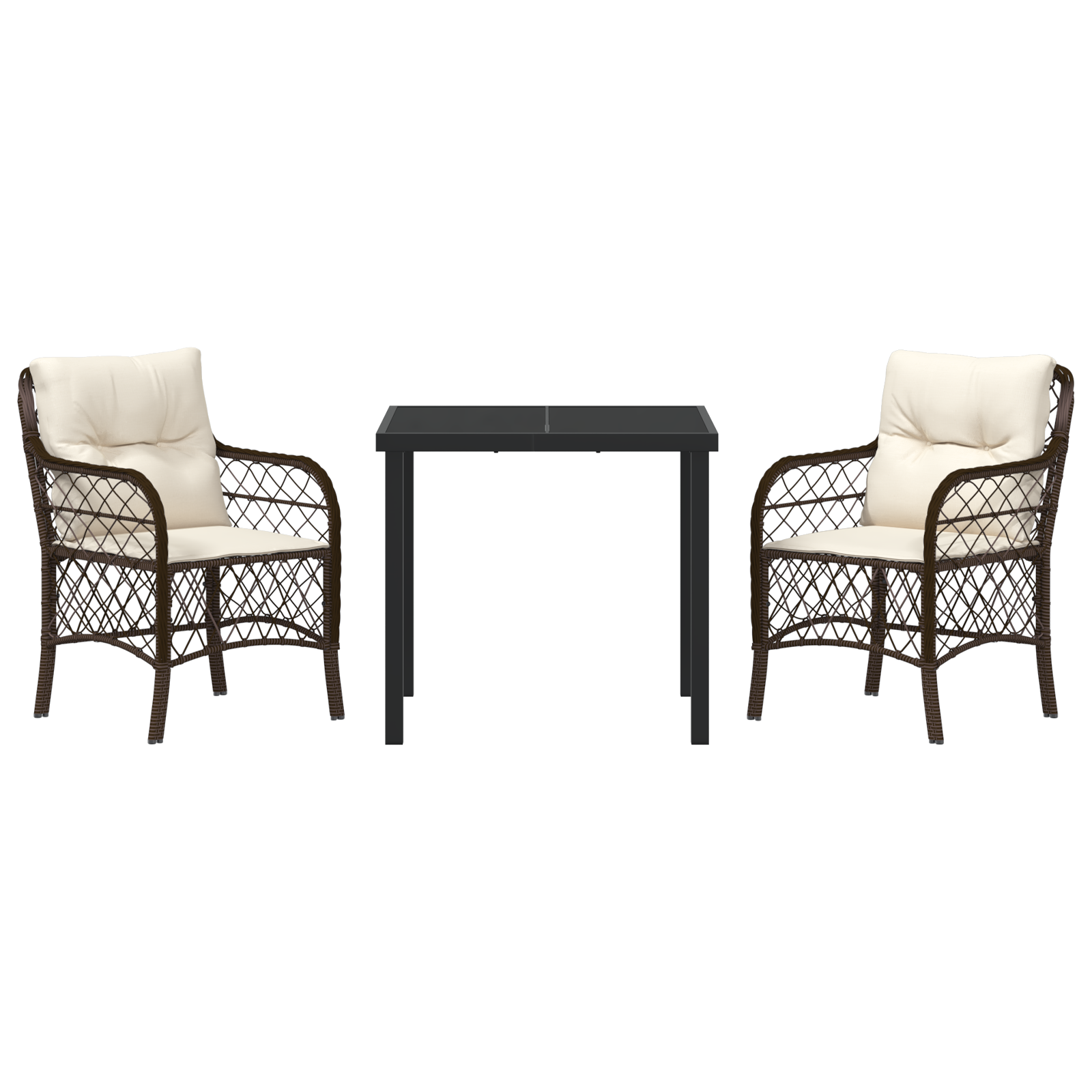 Set de masă pentru grădină 3 piese cu perne din rattan sintetic maro GartenMobel Dekor