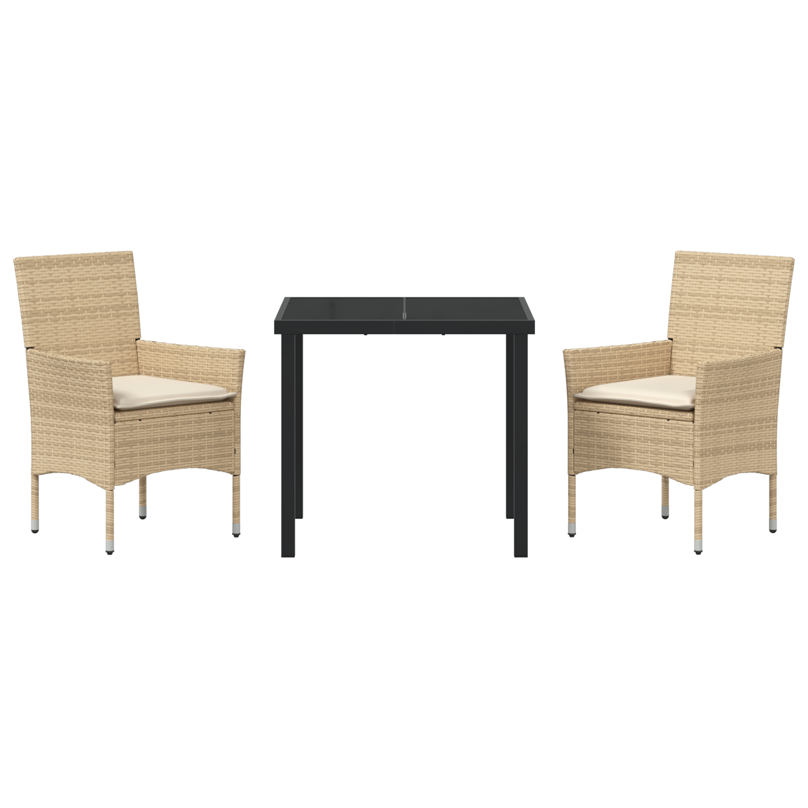 Set de Masă pentru Grădină 3 Piese cu Perne Ratan Poli Bej, Masa Neagră 80x80x73 cm din Sticlă Temperată GartenMobel Dekor
