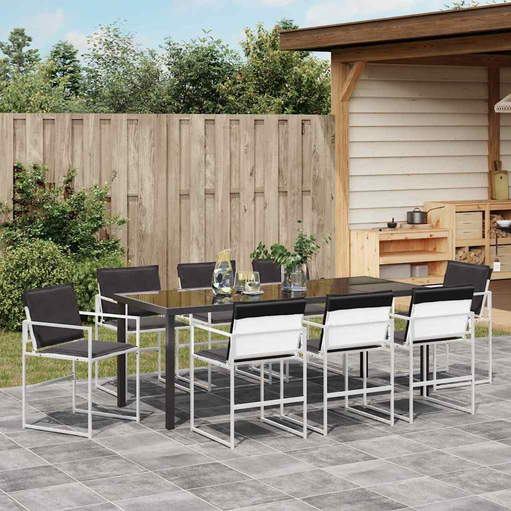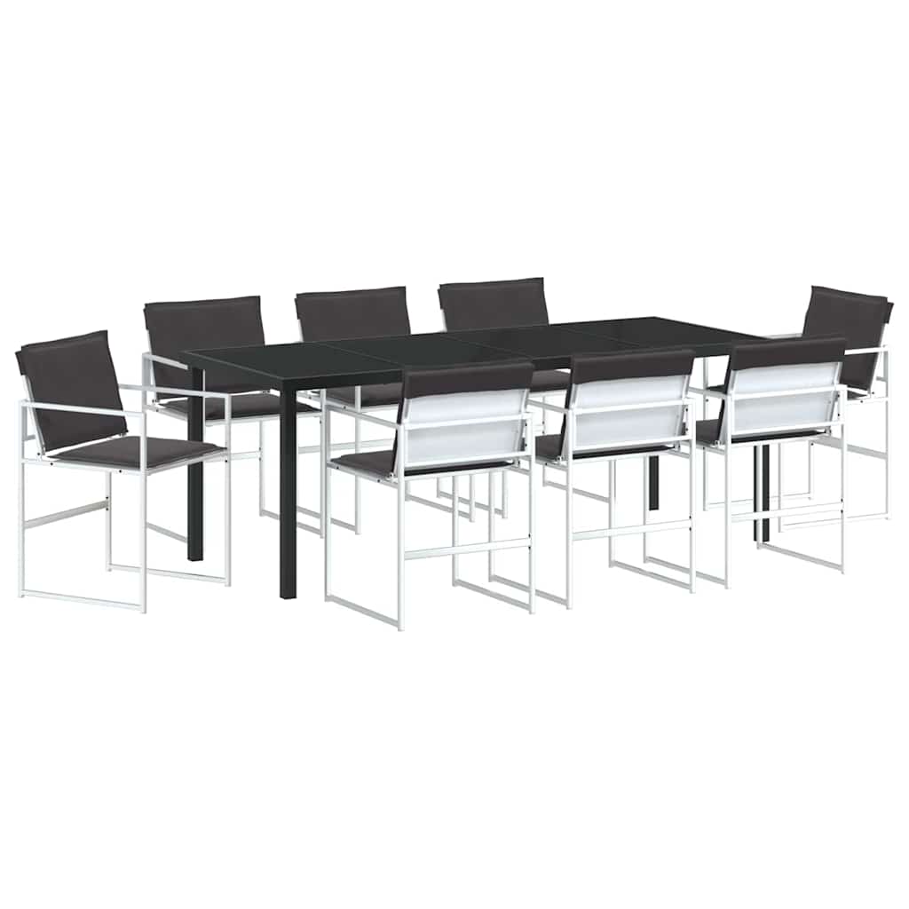 Set de masă pentru grădină 9 pcs Alb Oțel vopsit electrostatic GartenMobel Dekor