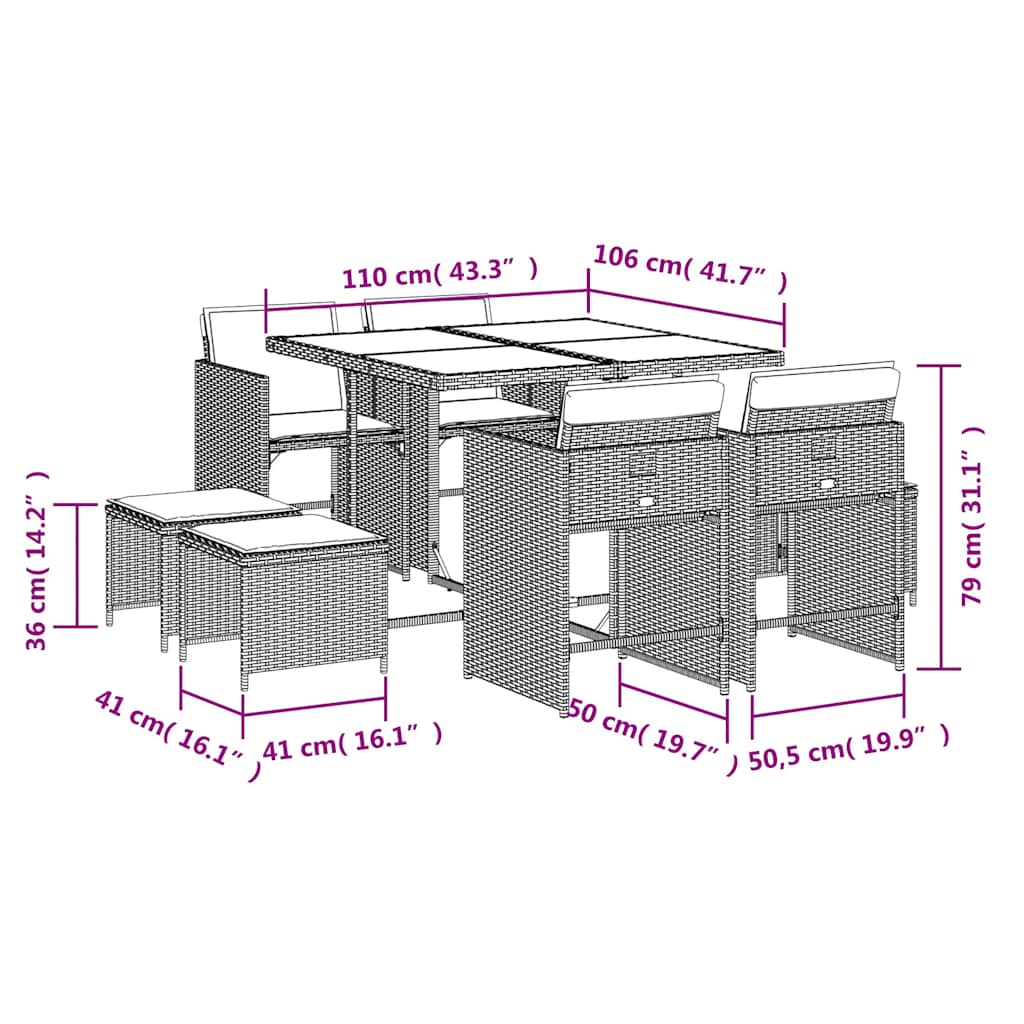 Set de masă pentru grădină, 9 piese, cu perne, bej, poliratan GartenMobel Dekor