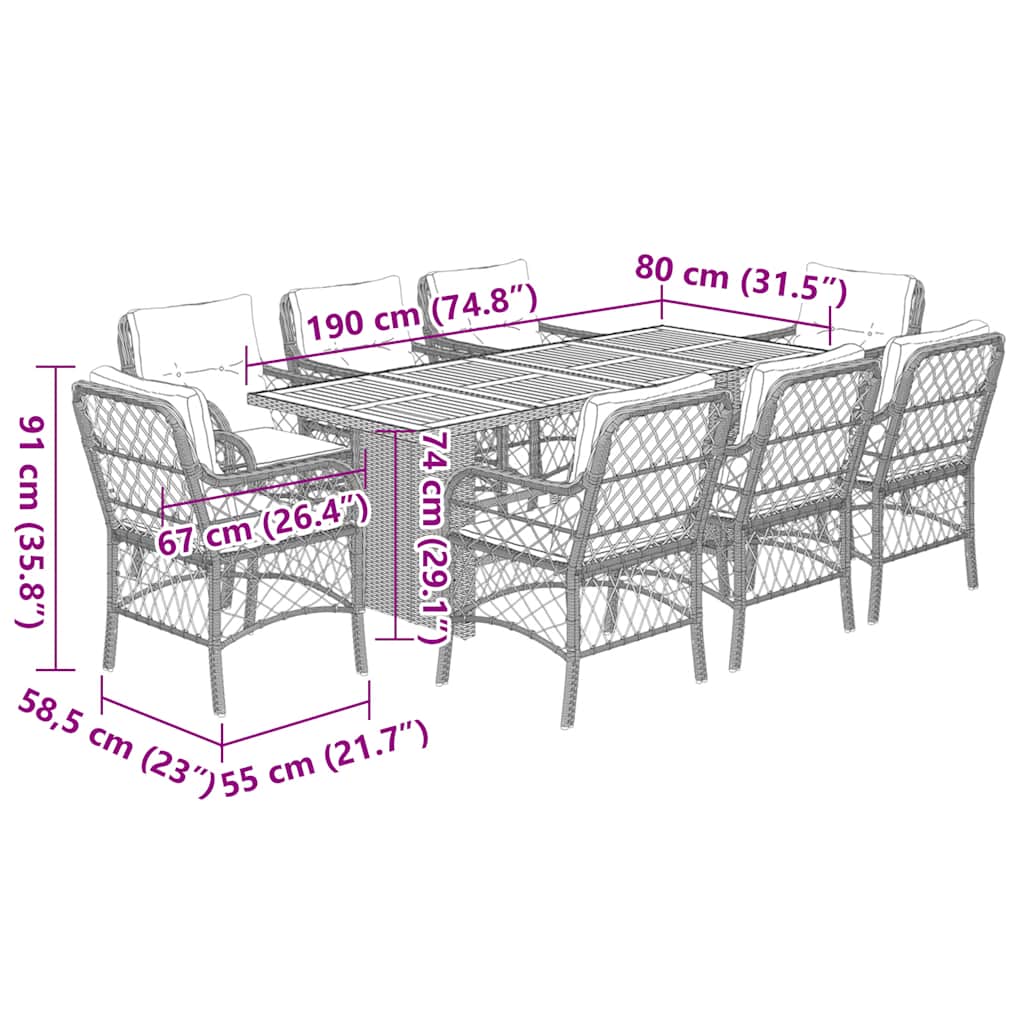 Set de masă pentru grădină, 9 piese, cu perne, bej, poliratan GartenMobel Dekor