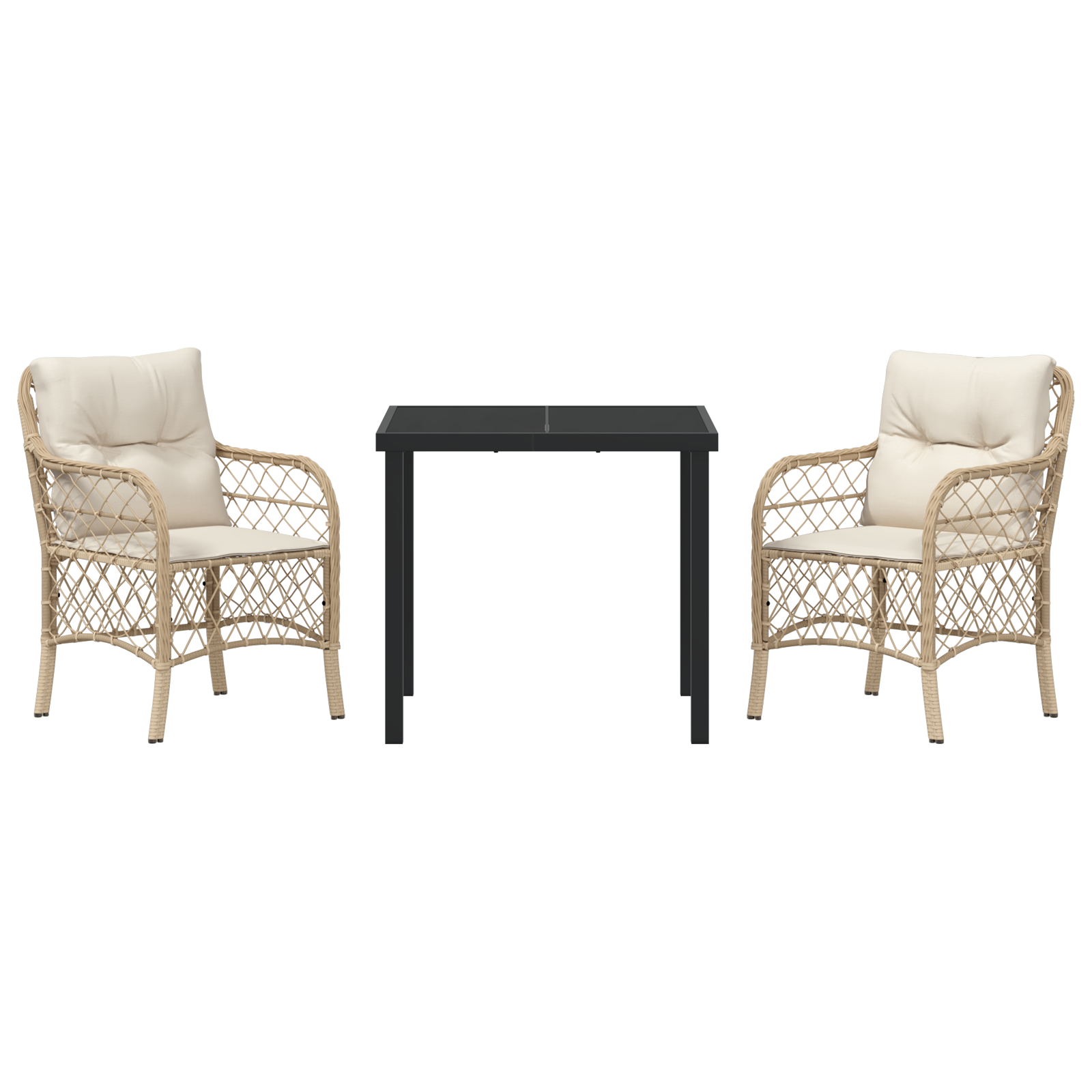 Set de Masă pentru Grădină cu 3 Piese și Perne Bej din Rattan Poli GartenMobel Dekor