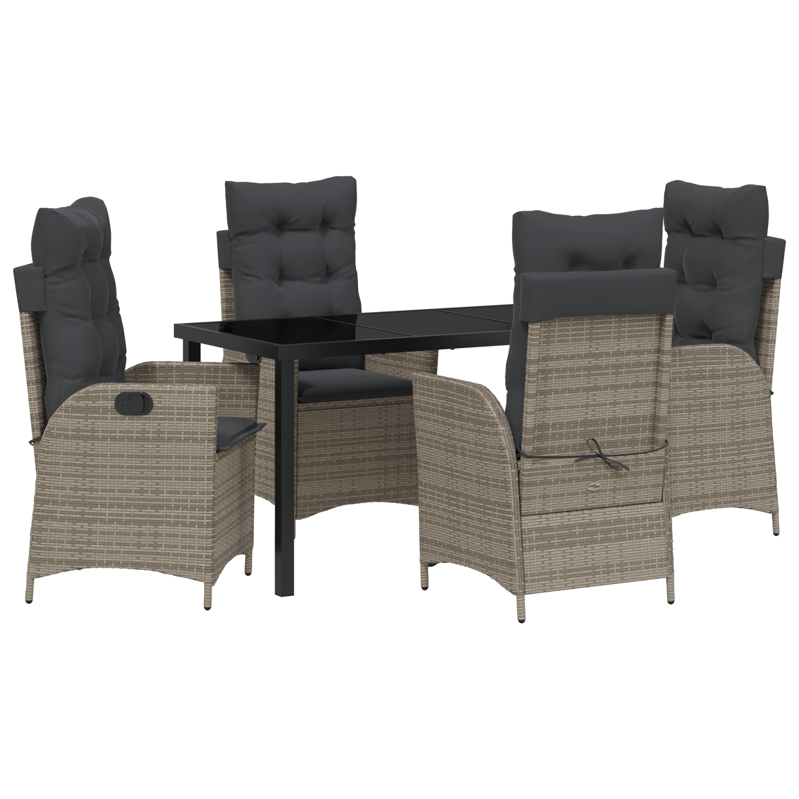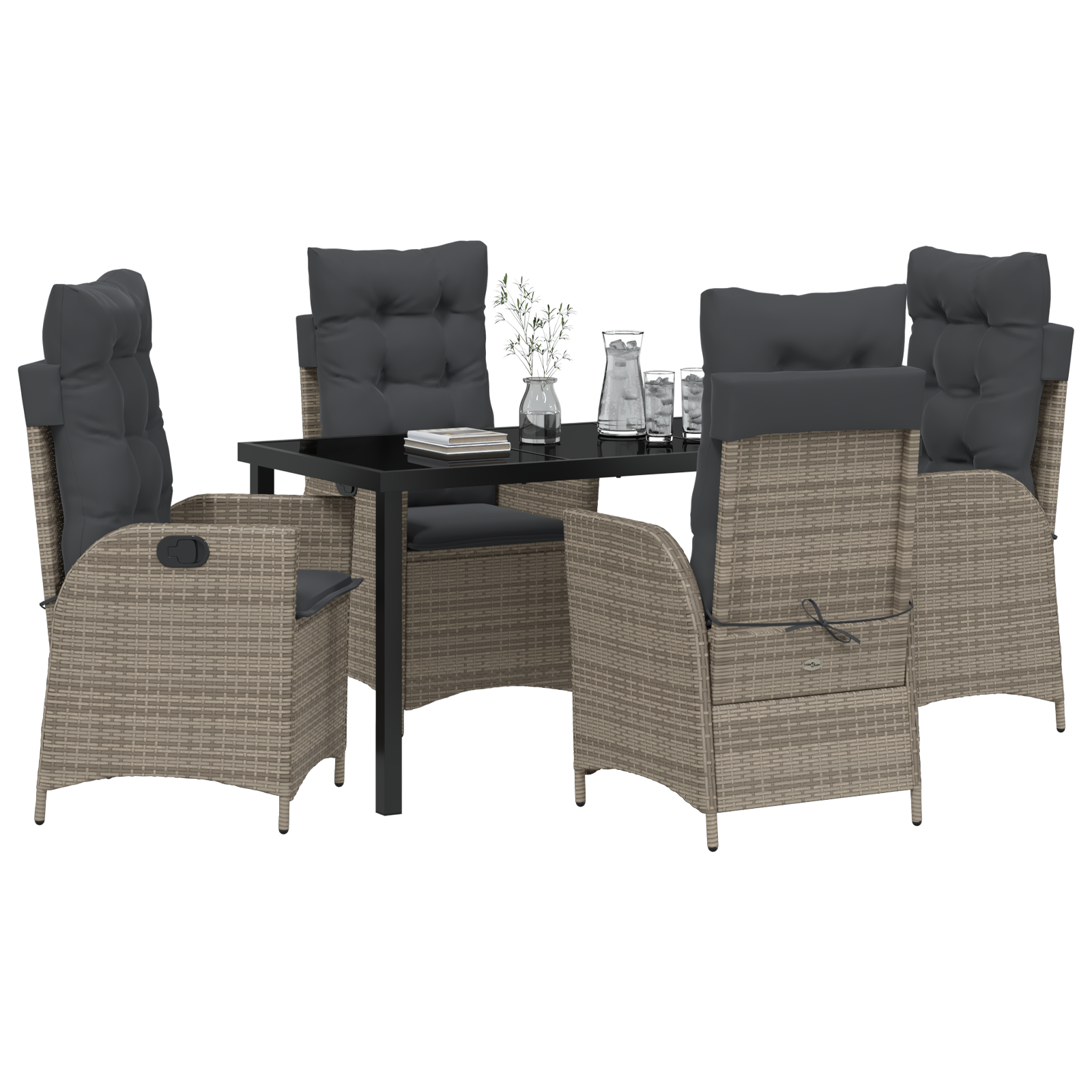 Set de Masă pentru Grădină cu 5 Piese cu Perne Gri Ratan PE GartenMobel Dekor