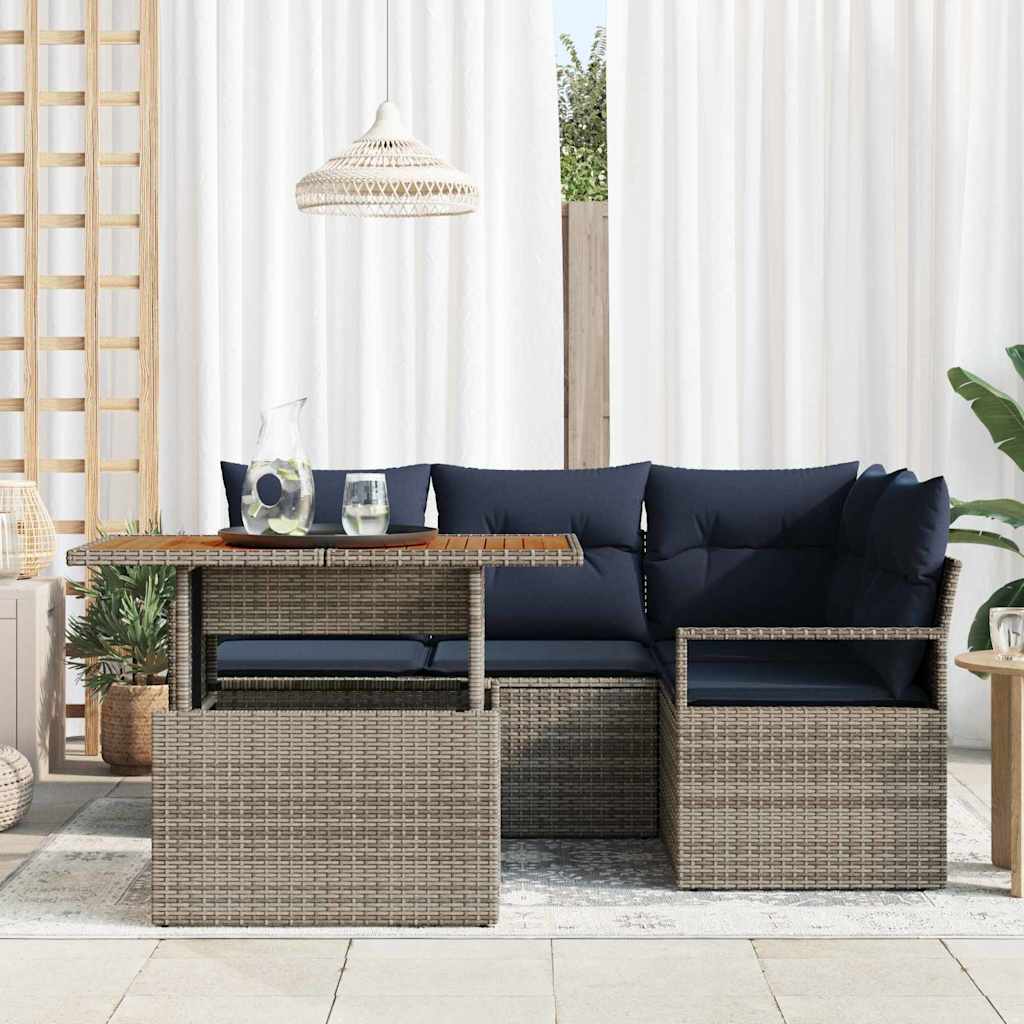 Set de masă pentru grădină cu pernă 5 pcs Gri și bleumarin GartenMobel Dekor