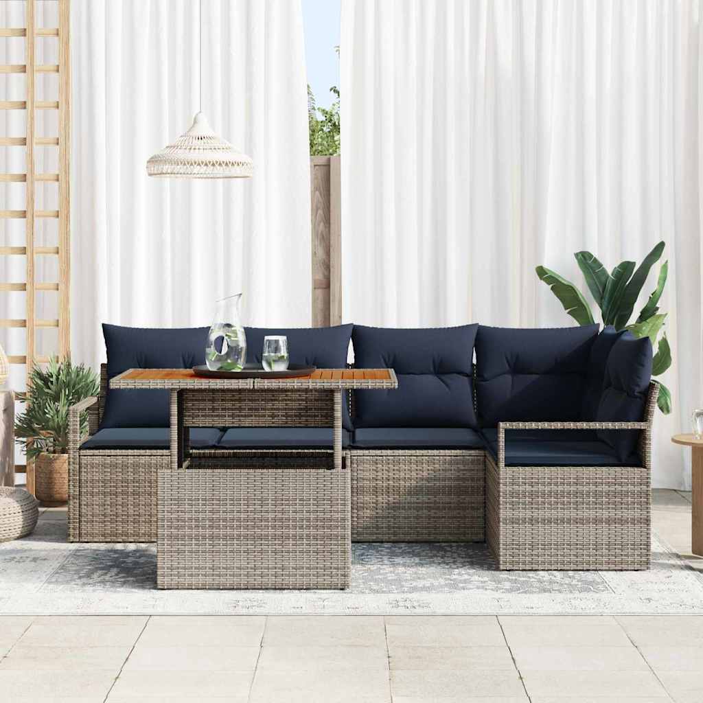 Set de masă pentru grădină cu pernă 6 pcs Gri și bleumarin GartenMobel Dekor