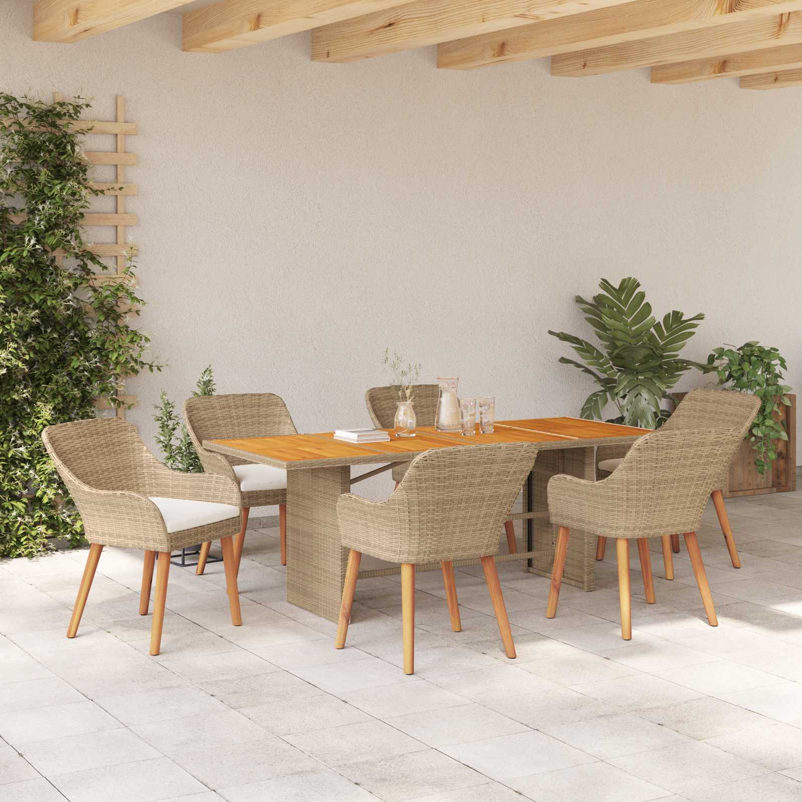 Set de masă pentru grădină cu pernă 7 pcs Bej poliratan GartenMobel Dekor