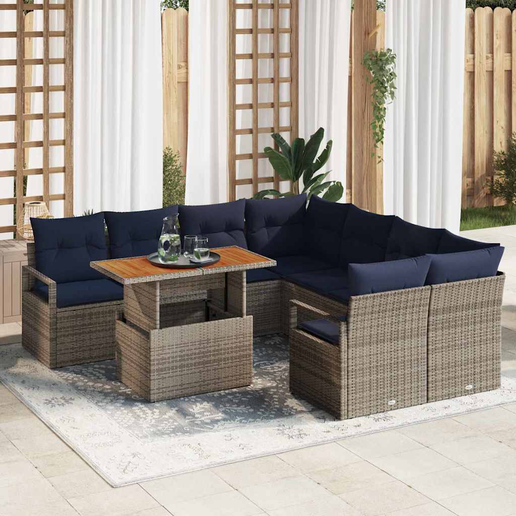 Set de masă pentru grădină cu pernă 9 pcs Gri și bleumarin GartenMobel Dekor