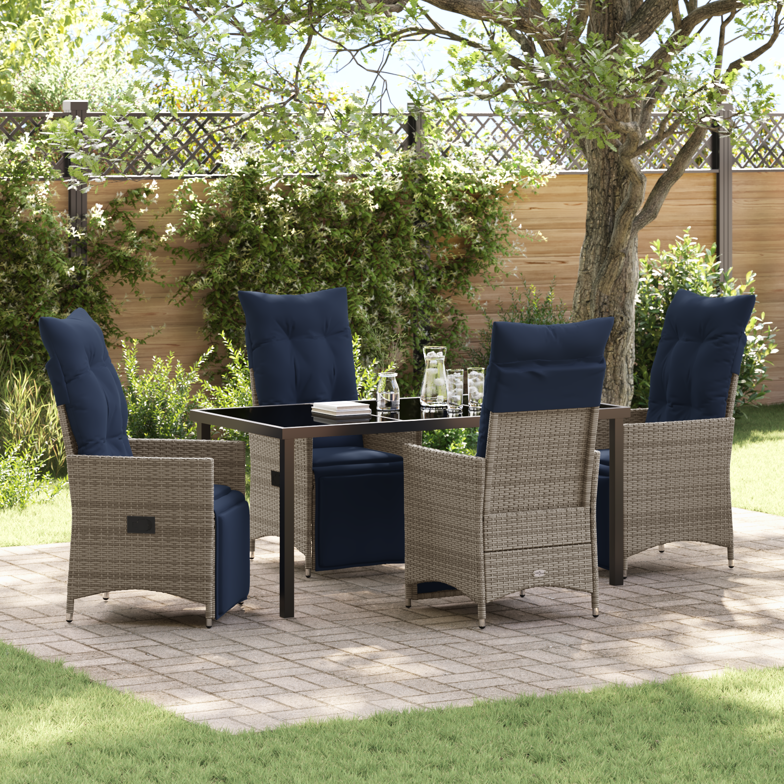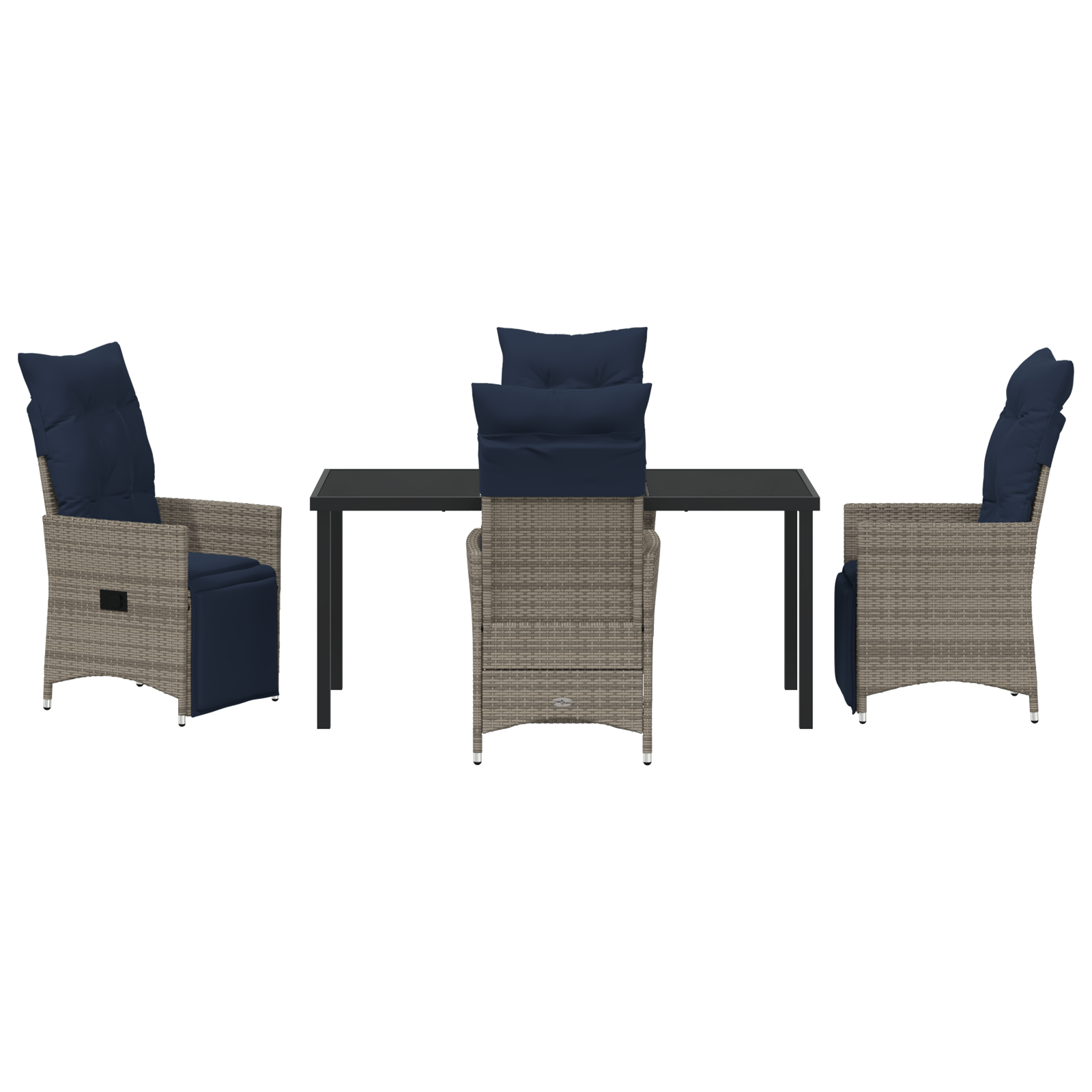 Set de Masă pentru Grădină cu Perne Ratan Poliat Gri, Masă pentru Grădină Neagră 160x80x73 cm din Sticlă Securizată GartenMobel Dekor