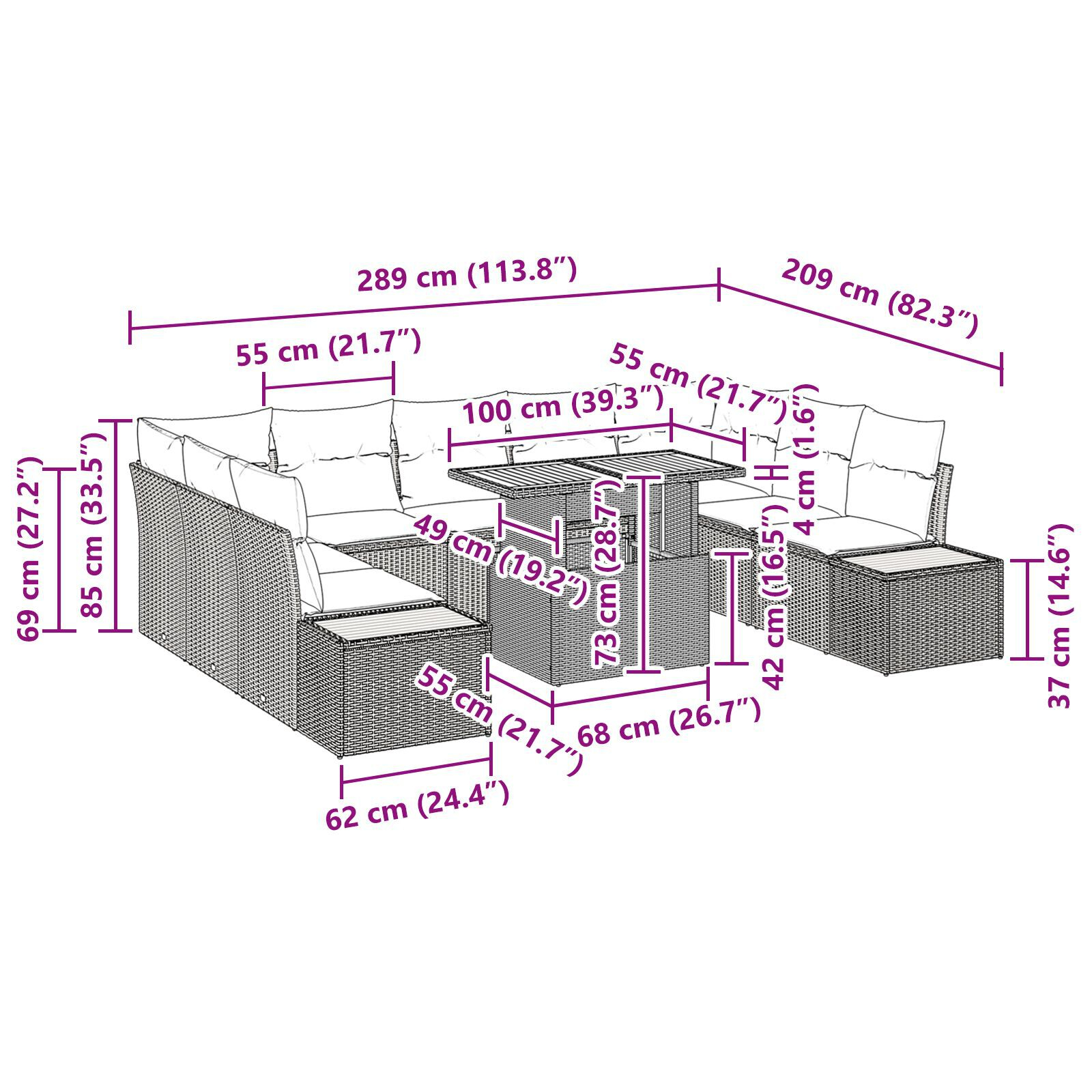 Setul ăsta de dining pentru grădină cu 10 piese combină stilul cu funcționalitatea, fiind gândit să facă timpul petrecut în aer liber epic. Cu un cadru sleek din ratan polimer negru și perne bej super comfy, oferă o vibrație modernă perfectă pentru socializare, după-amieze leneșe sau mese în familie afară, având loc pentru cinci oameni confortabil, plus un pic de spațiu în plus dacă e nevoie.
