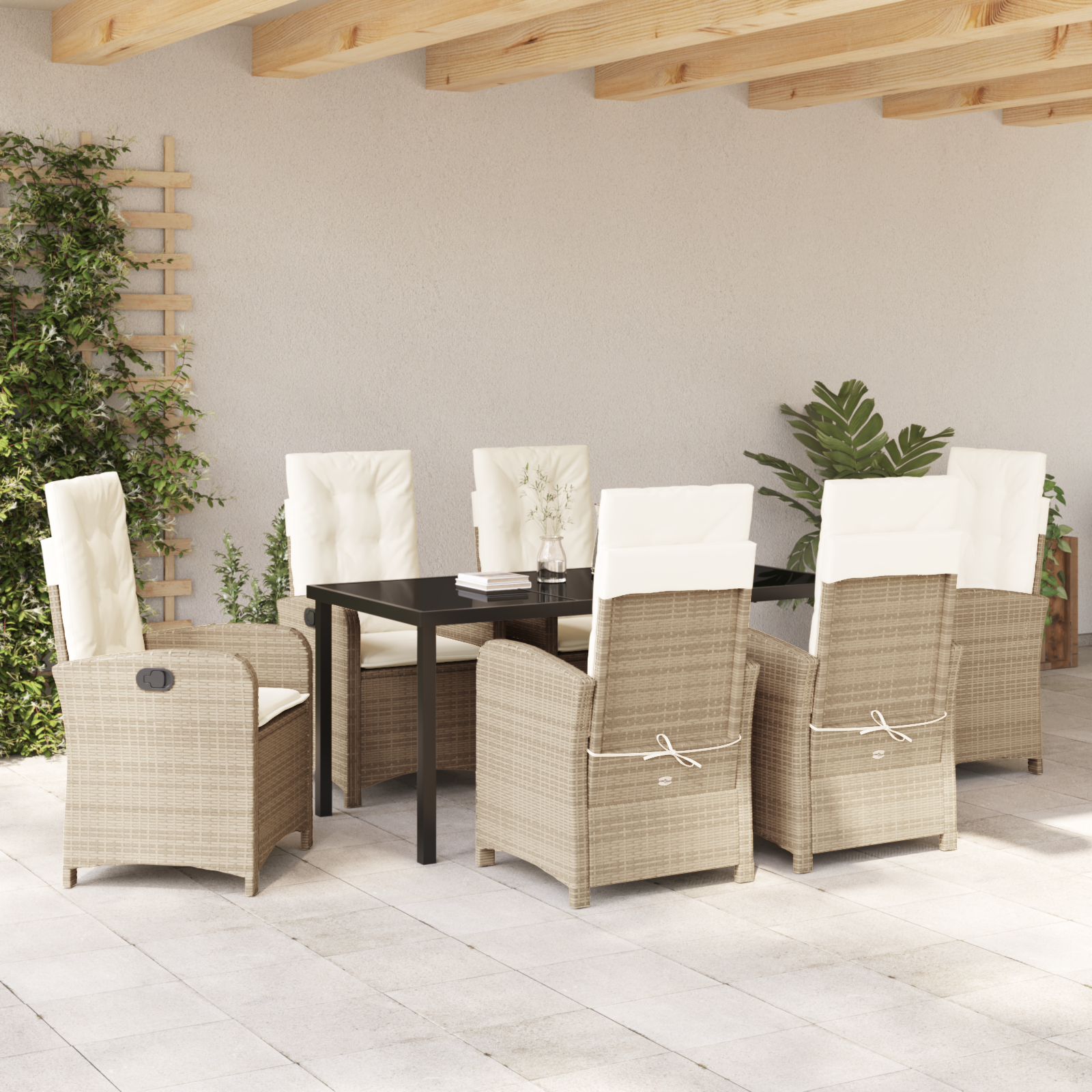 Set de mese de grădină 7 piese cu perne bej din poliratan GartenMobel Dekor