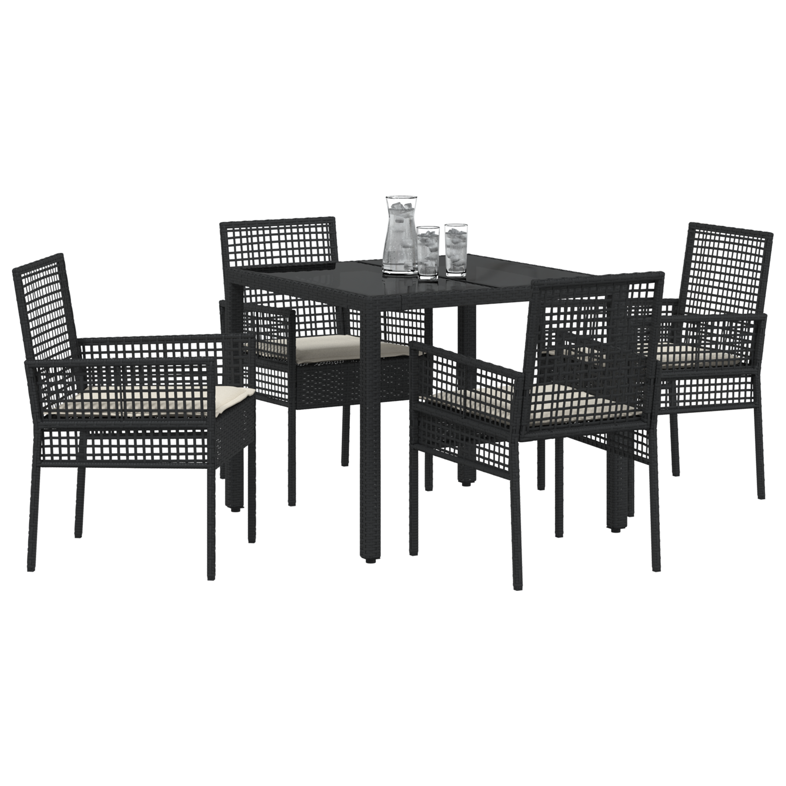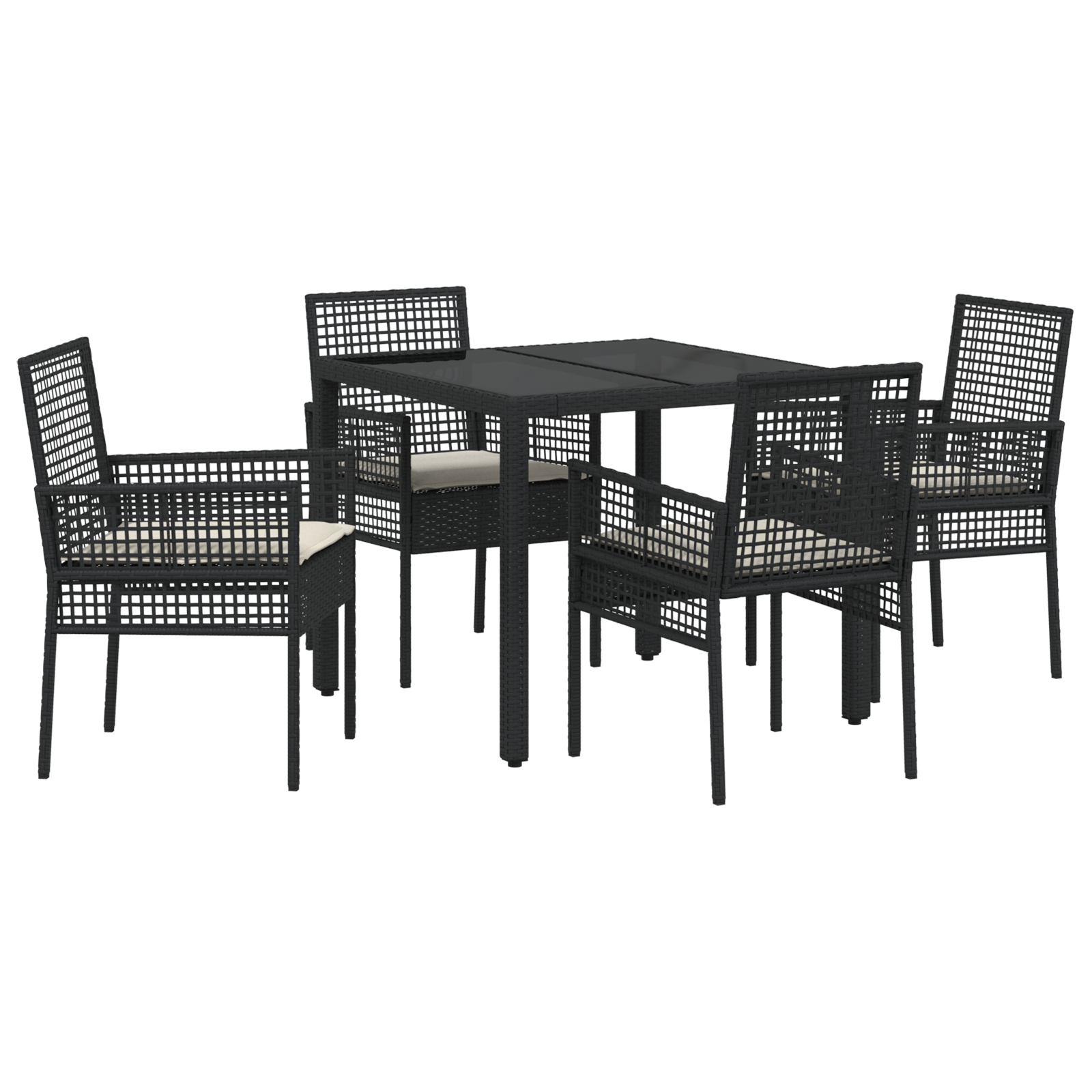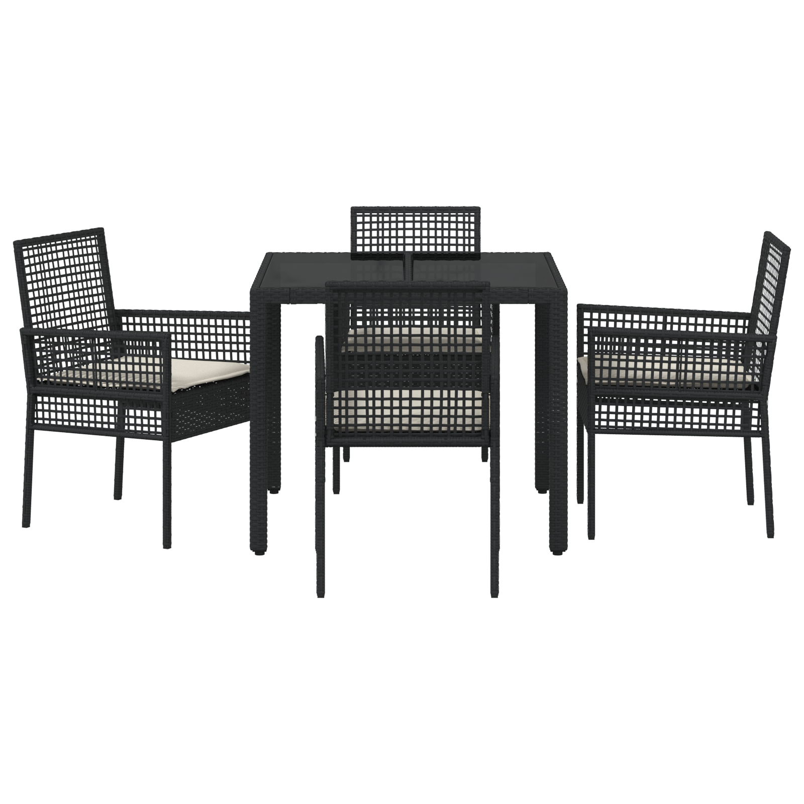 Set de mese de grădină cu 5 piese și perne Negru Poliratan GartenMobel Dekor