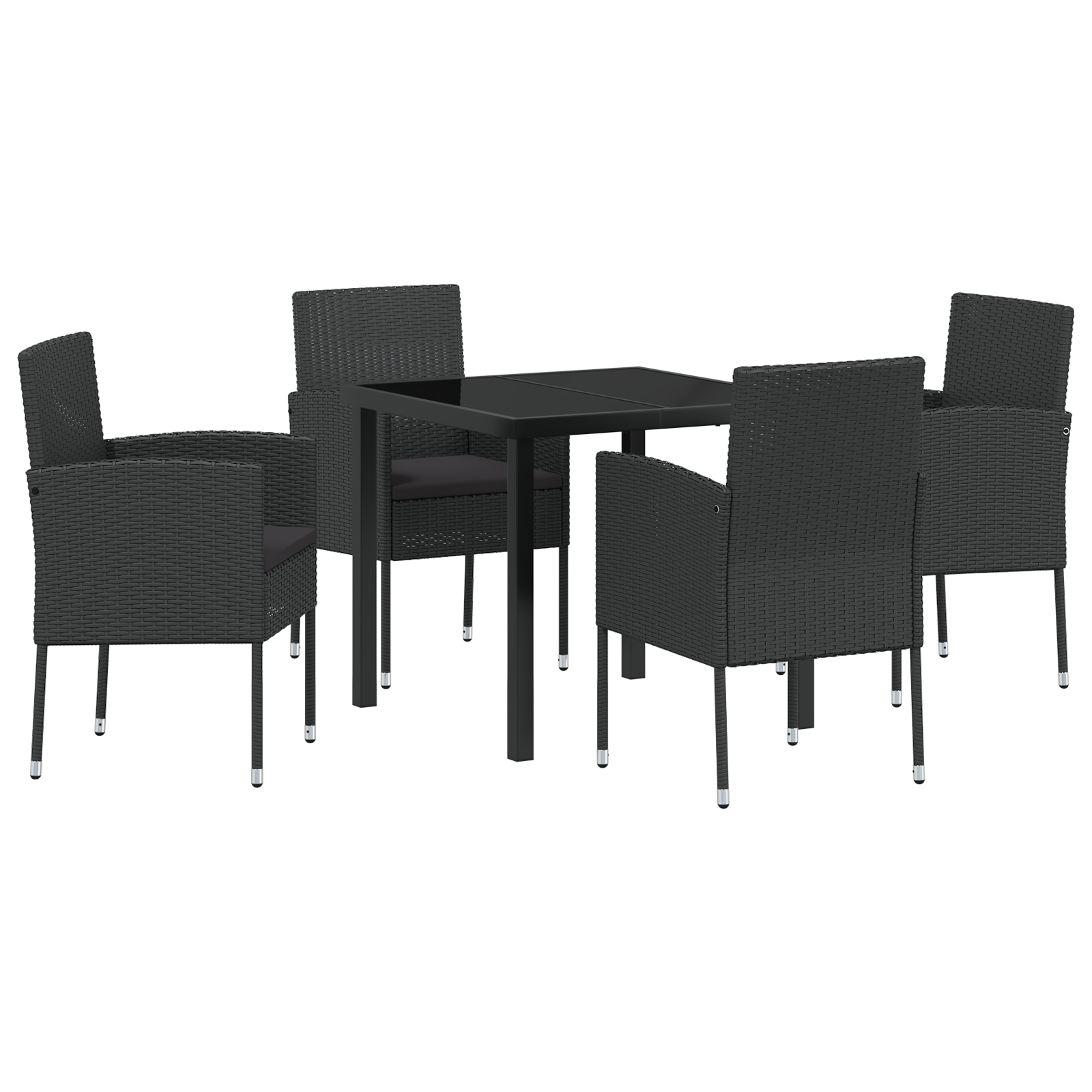 Setul ăsta de scaune de grădină creează o atmosferă primitoare și confortabilă pentru mese în aer liber sau relaxare. Amestecând stilul modern cu confortul clasic, scaunele astea sunt grozave pentru petreceri pe terasă, oferind atât durabilitate, cât și un aspect plăcut. Rattanul poliester negru și pernele negre se completează armonios, făcând din aceste scaune o alegere perfectă pentru amenajarea exterioară.