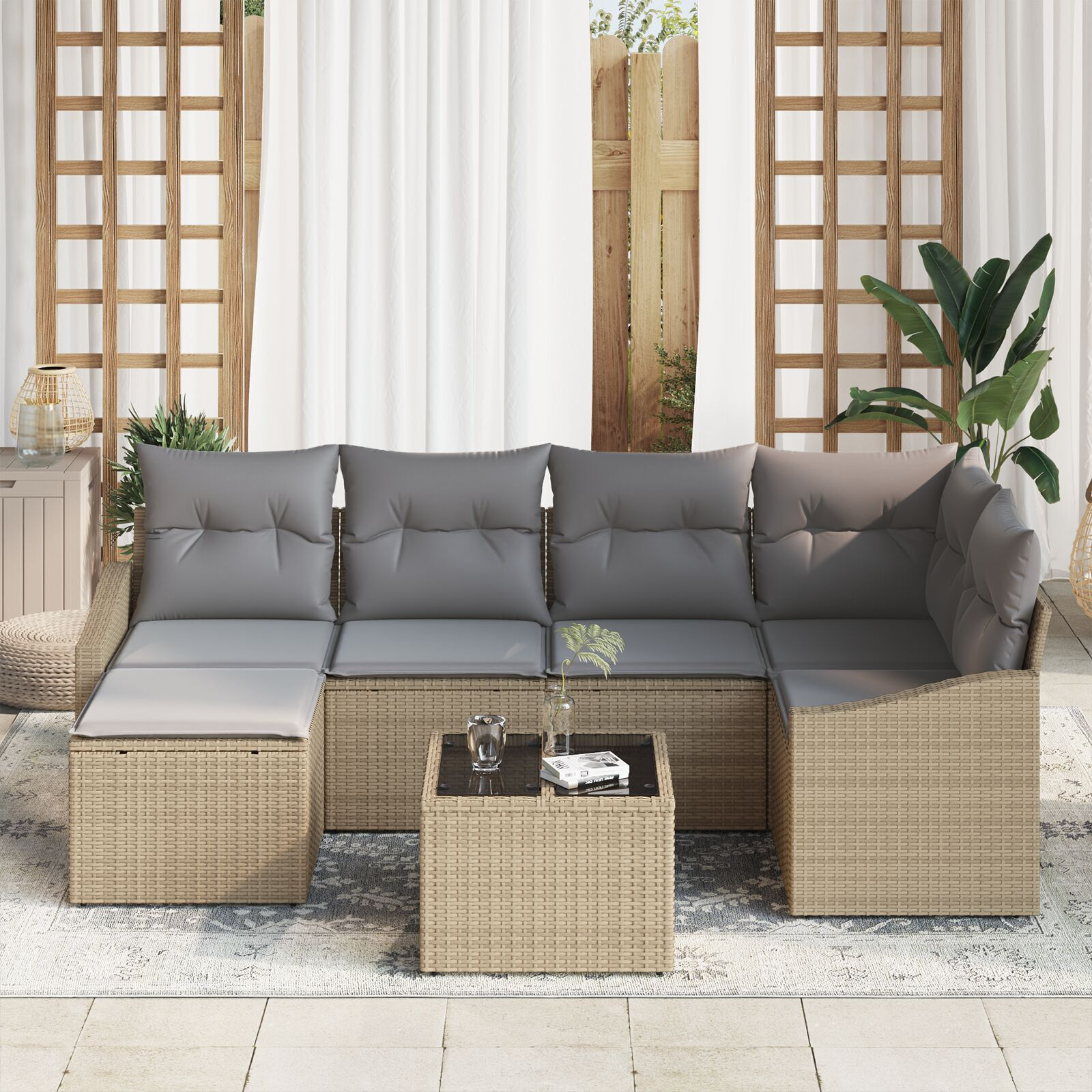 Setul ăsta de mese de grădină creează un spațiu primitor pentru șezut afară, perfect pentru întâlniri relaxante. E făcut din ratan poli rezistent și are perne gri confortabile, se potrivește perfect cu diferite decoruri exterioare, aducând confort și stil.