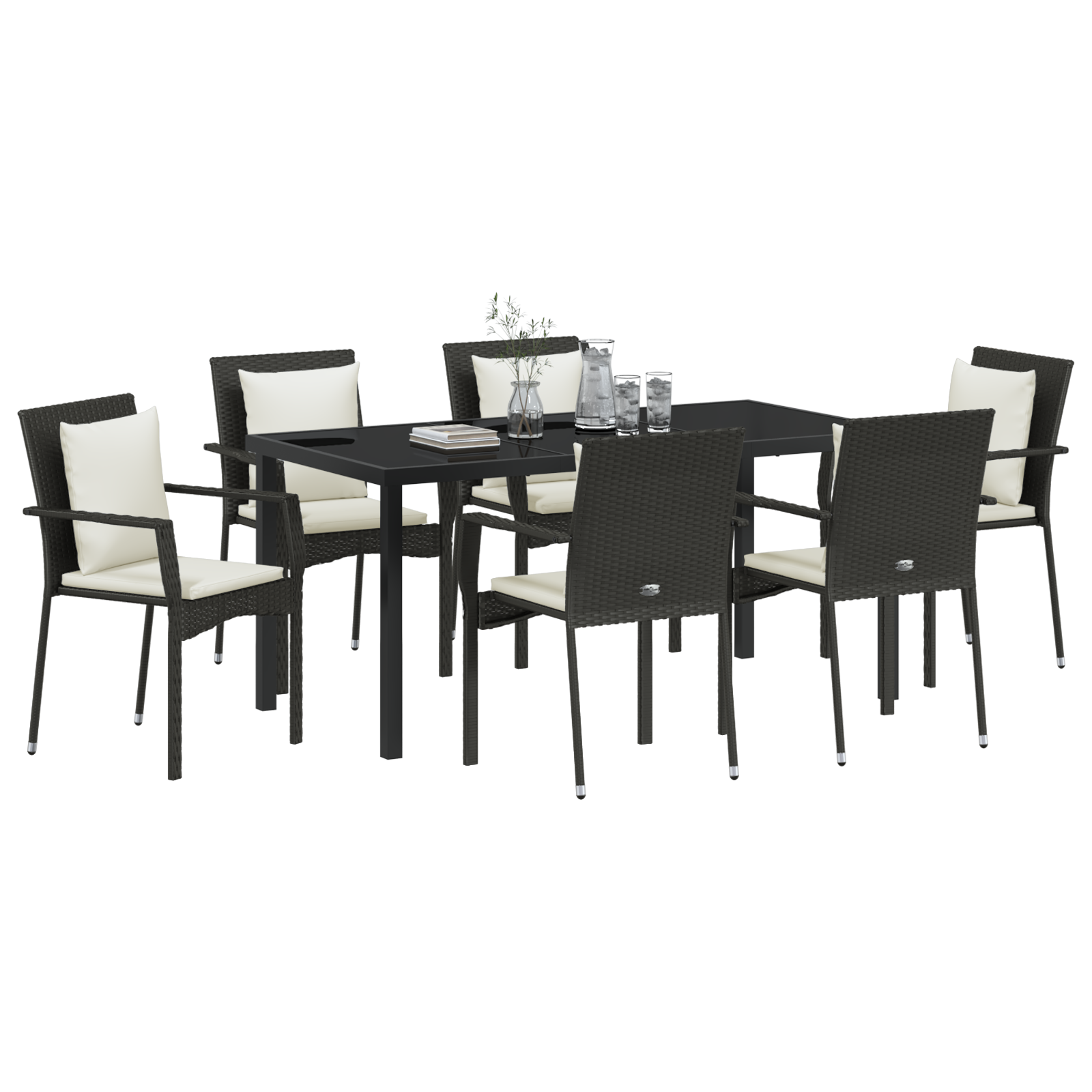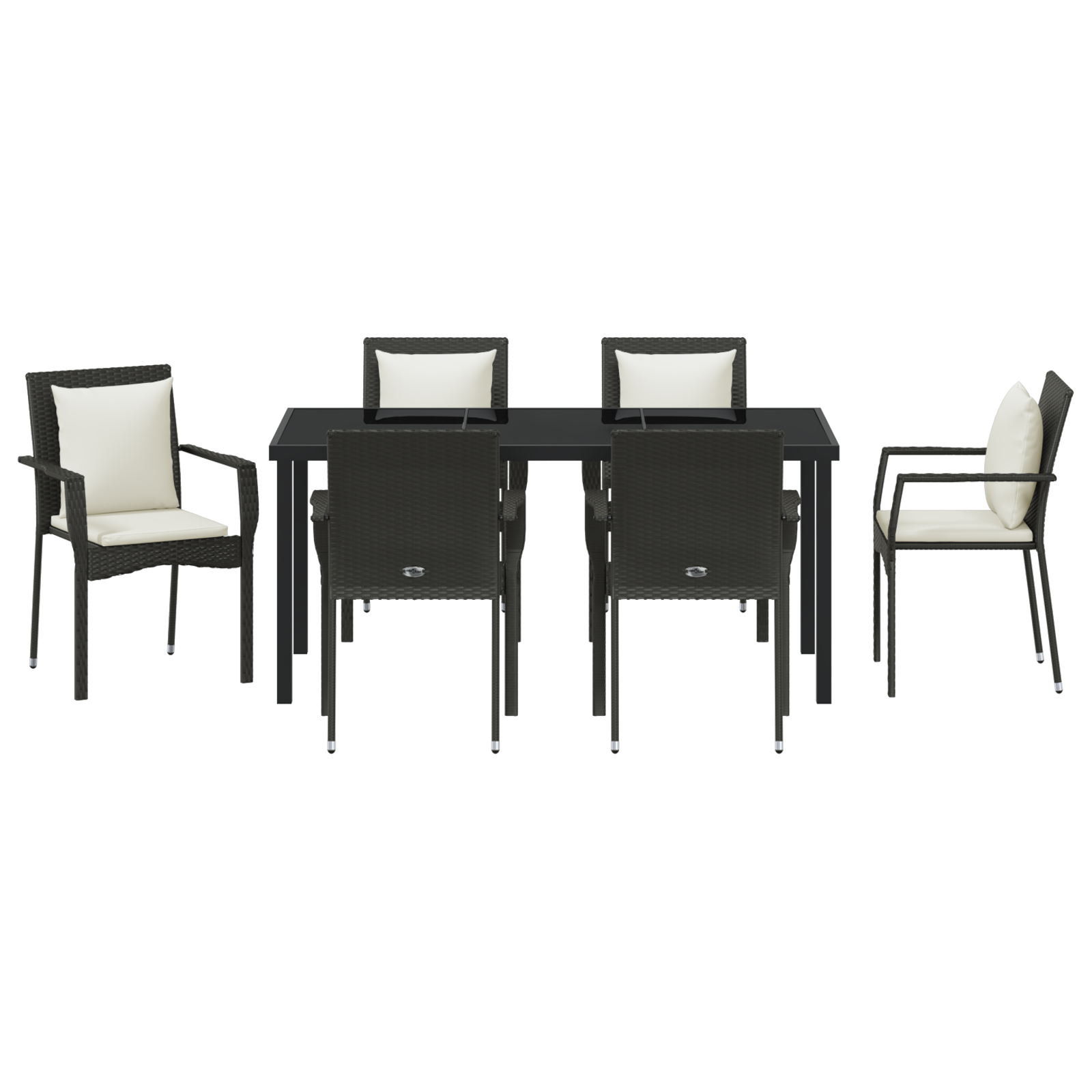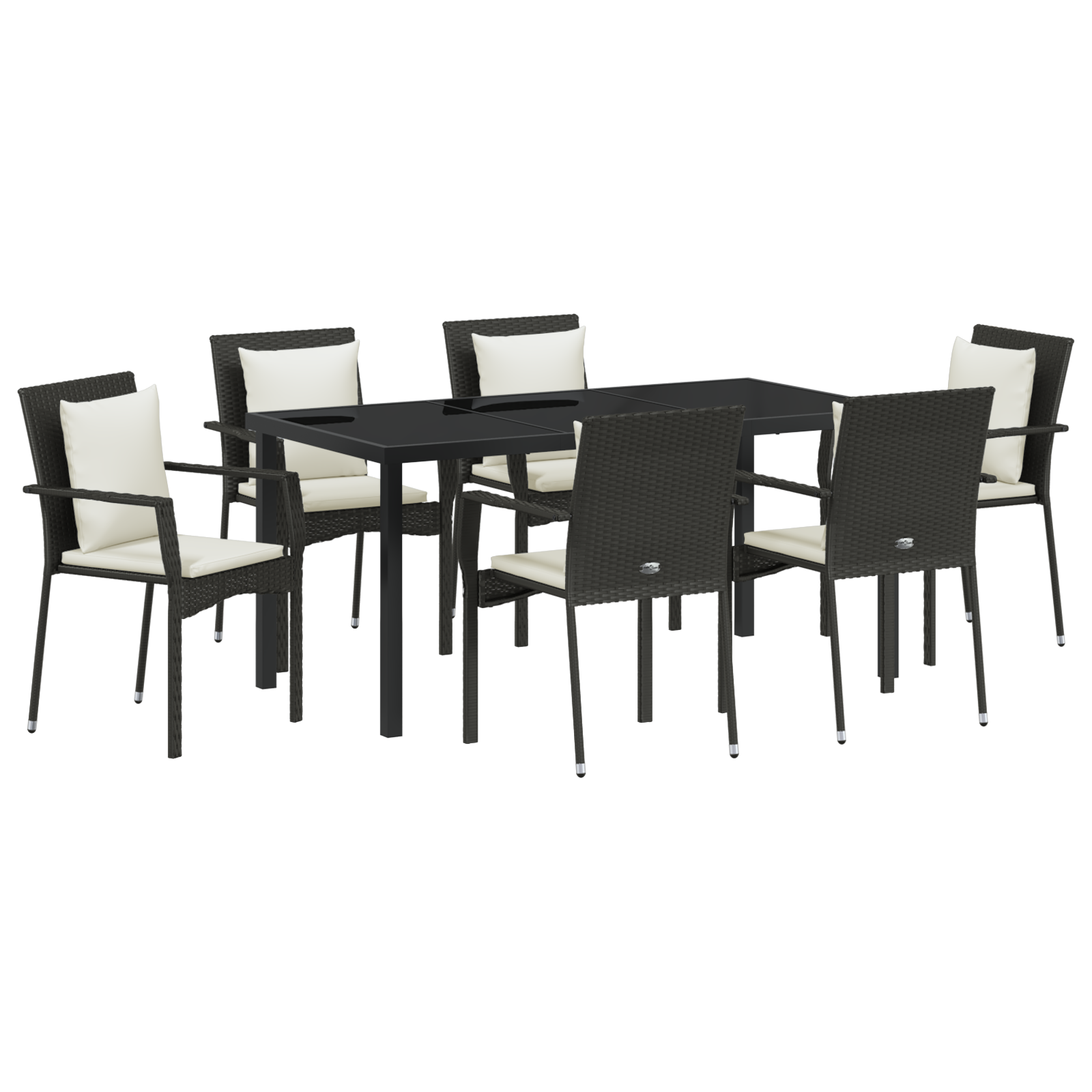 Set de mese pentru grădină de 7 piese cu perne Negru Poliratan GartenMobel Dekor