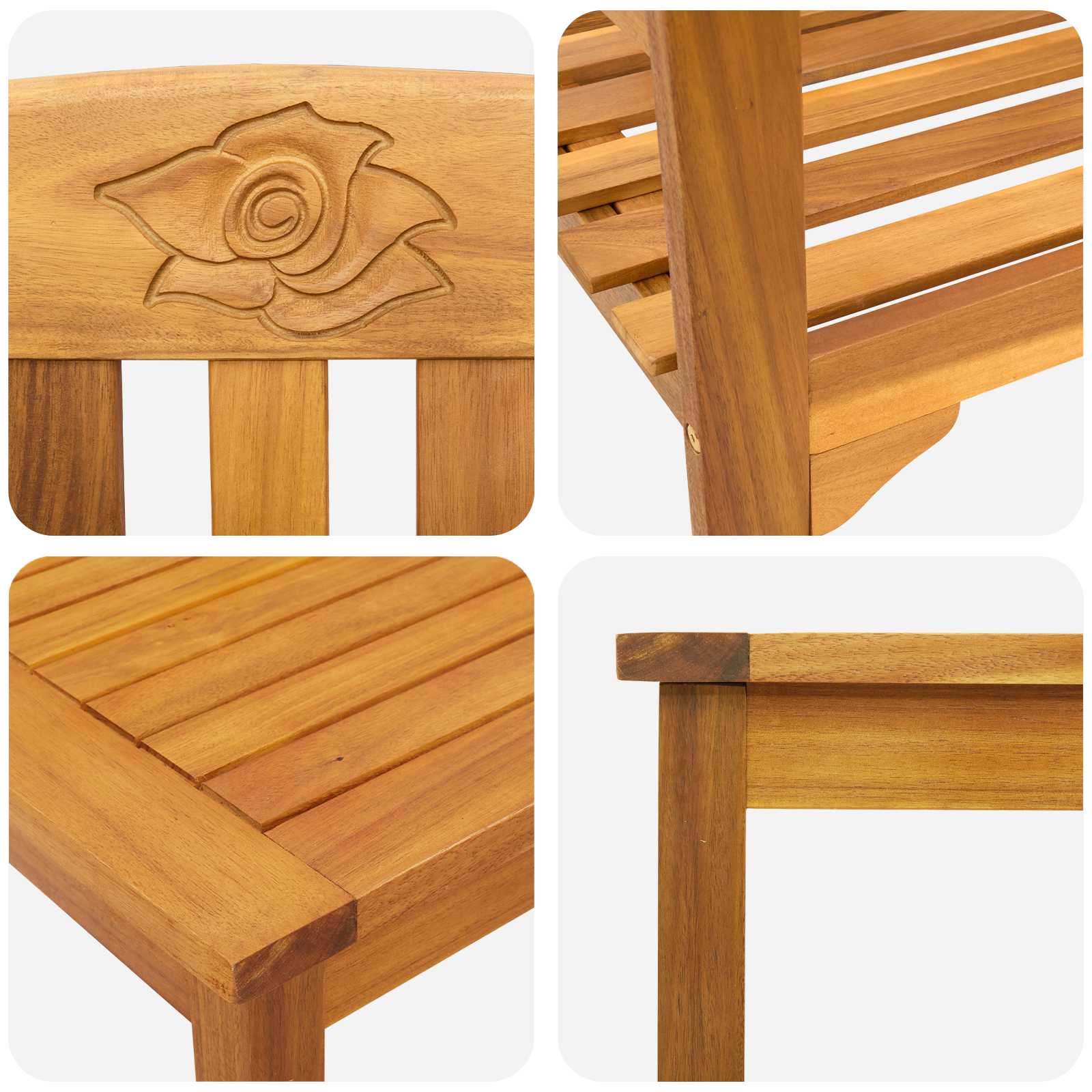 • Construcție din lemn masiv de acacia: Făcut din lemn masiv de acacia, acest set e stabil și durabil. Lemnul ăsta rezistă bine la vreme, așa că mobilierul rămâne frumos afară. O husă impermeabilă îl protejează și îi prelungește viața.