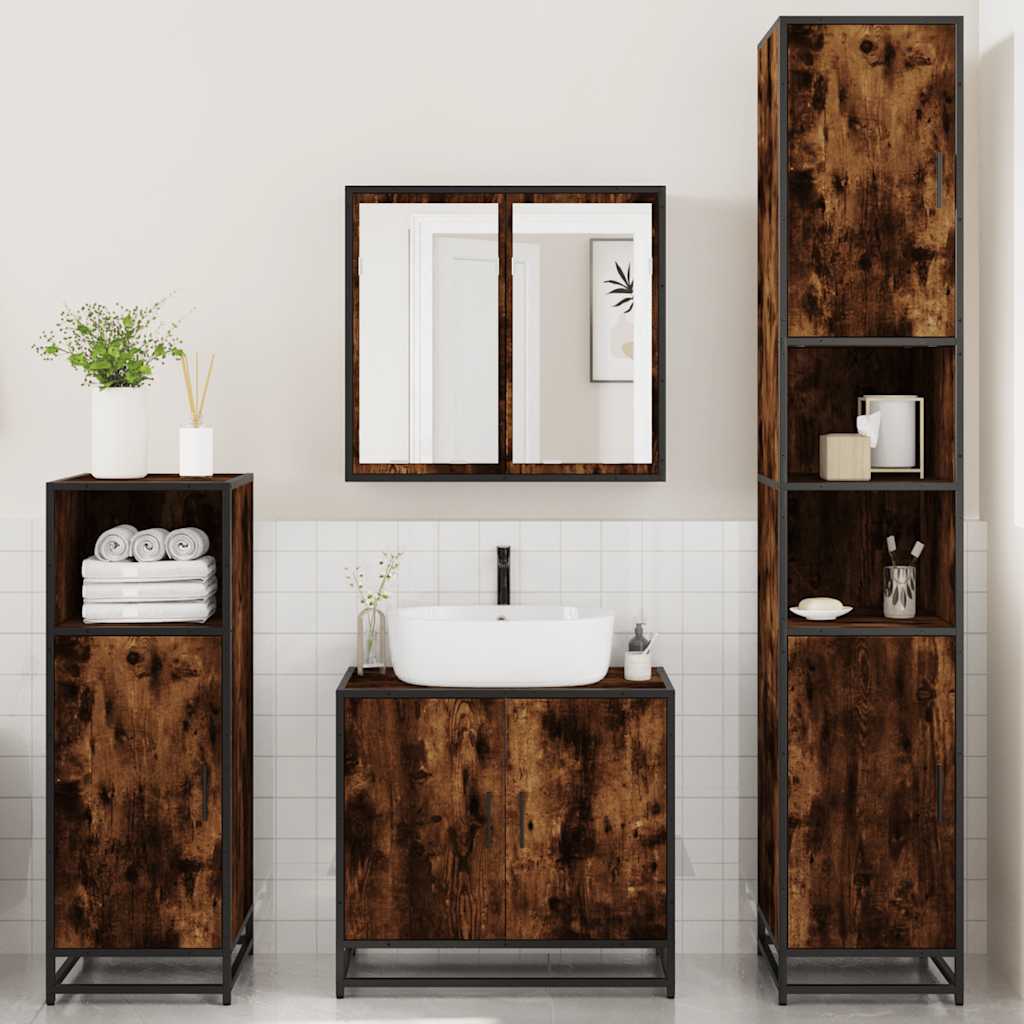 Set de mobilier de baie 4 piese Lemn prelucrat de stejar afumat GartenMobel Dekor
