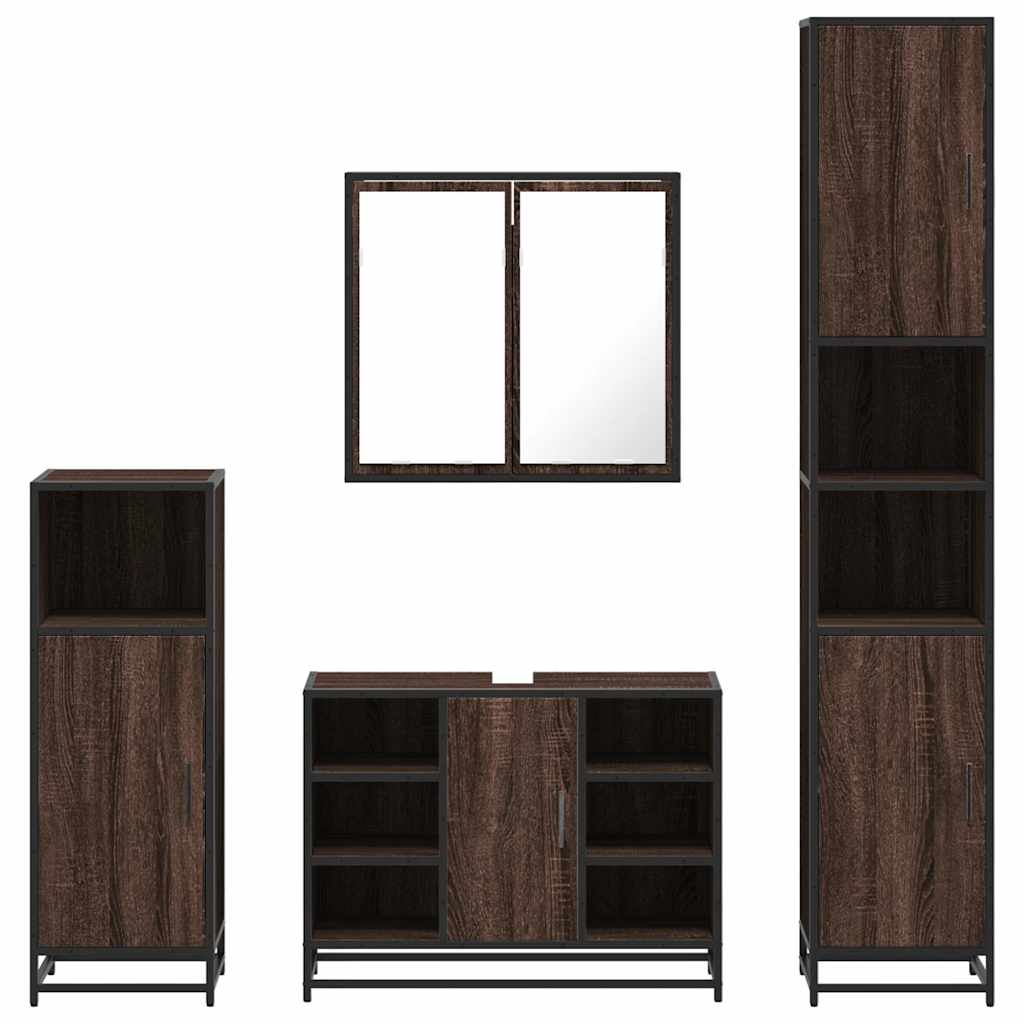 Set de mobilier de baie din 4 piese din lemn de stejar maro GartenMobel Dekor