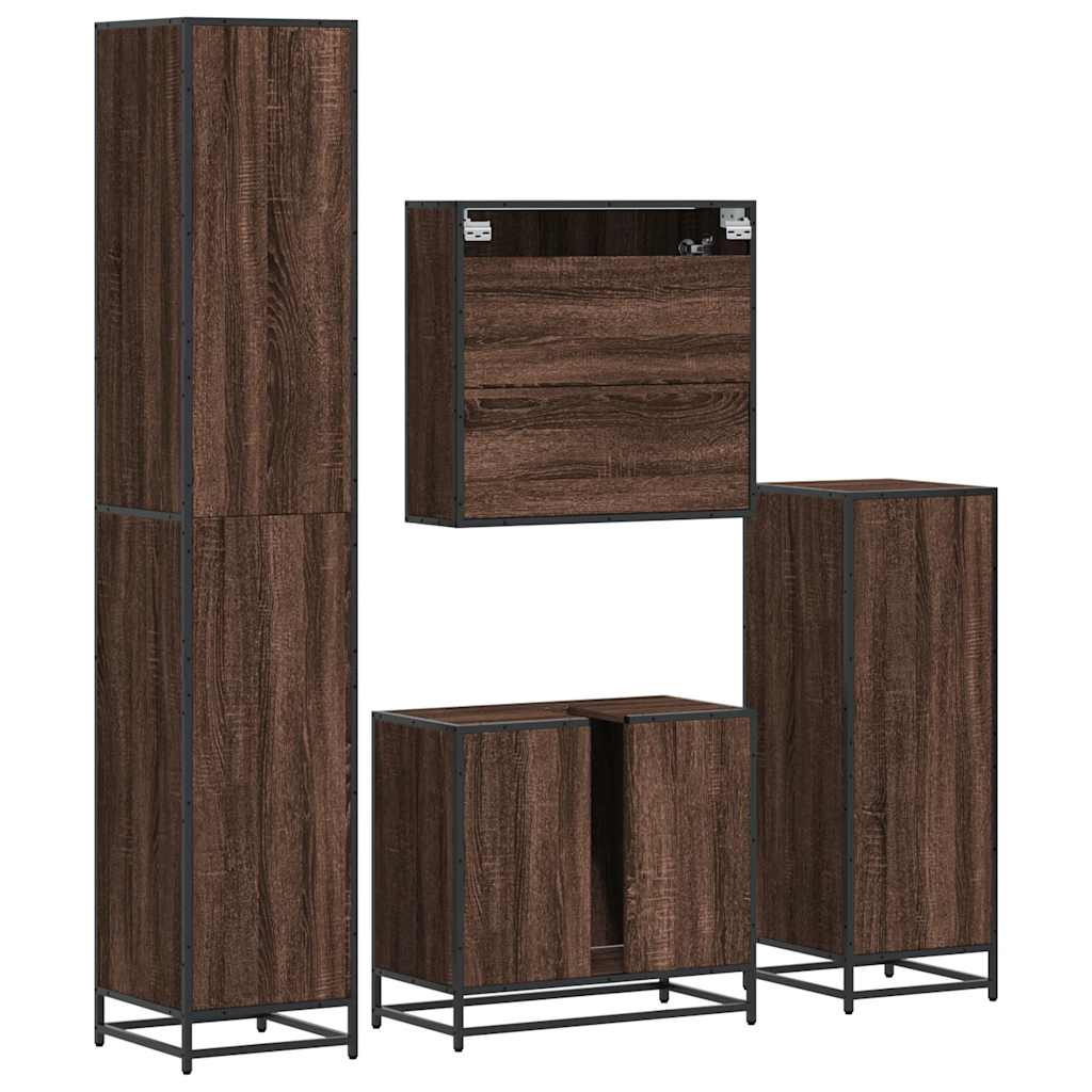 Set de mobilier de baie din 4 piese din lemn de stejar maro GartenMobel Dekor
