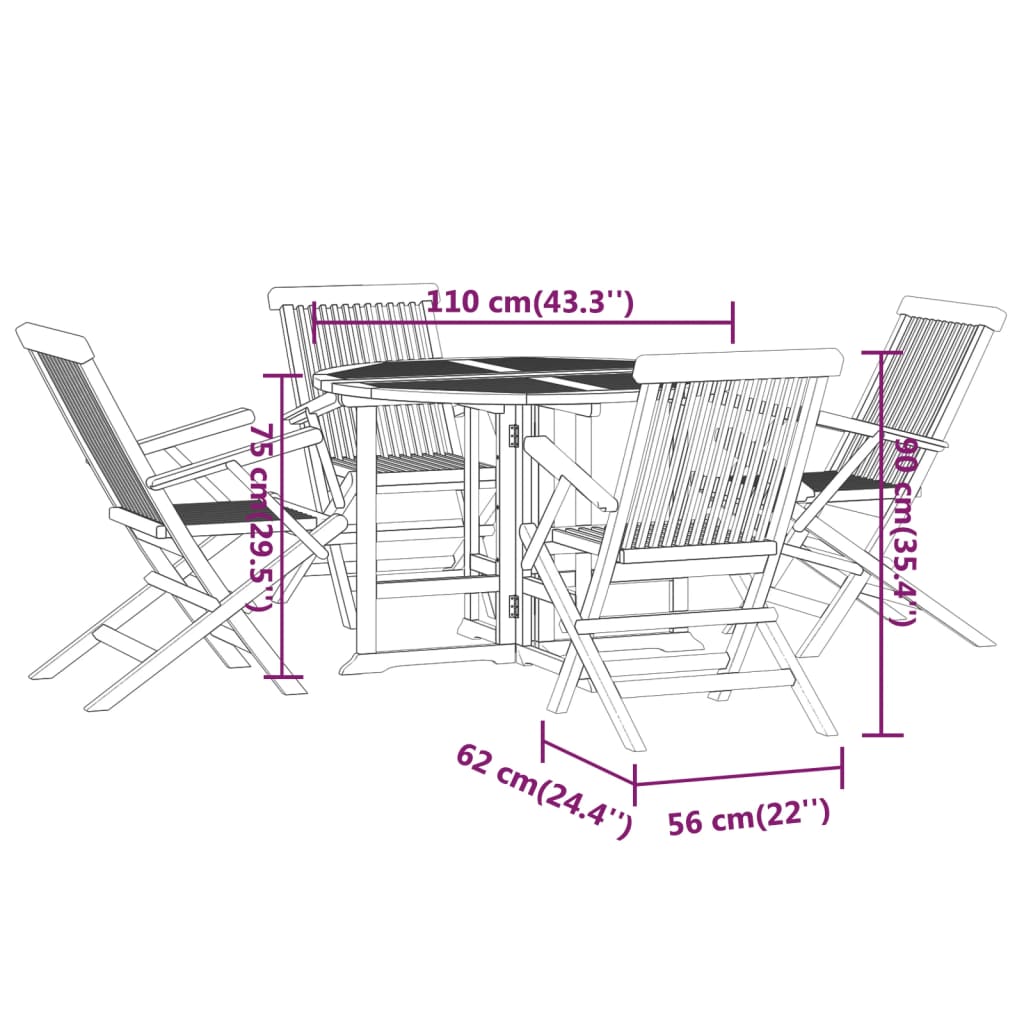 Set de mobilier de exterior pliabil, 5 piese, lemn masiv de tec GartenMobel Dekor