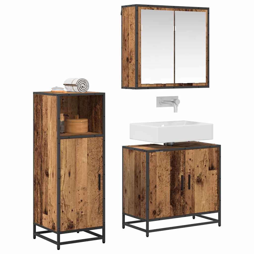 Set de mobilier pentru baie 3 pcs Lemn vechi 60 x 33 x 60 cm GartenMobel Dekor