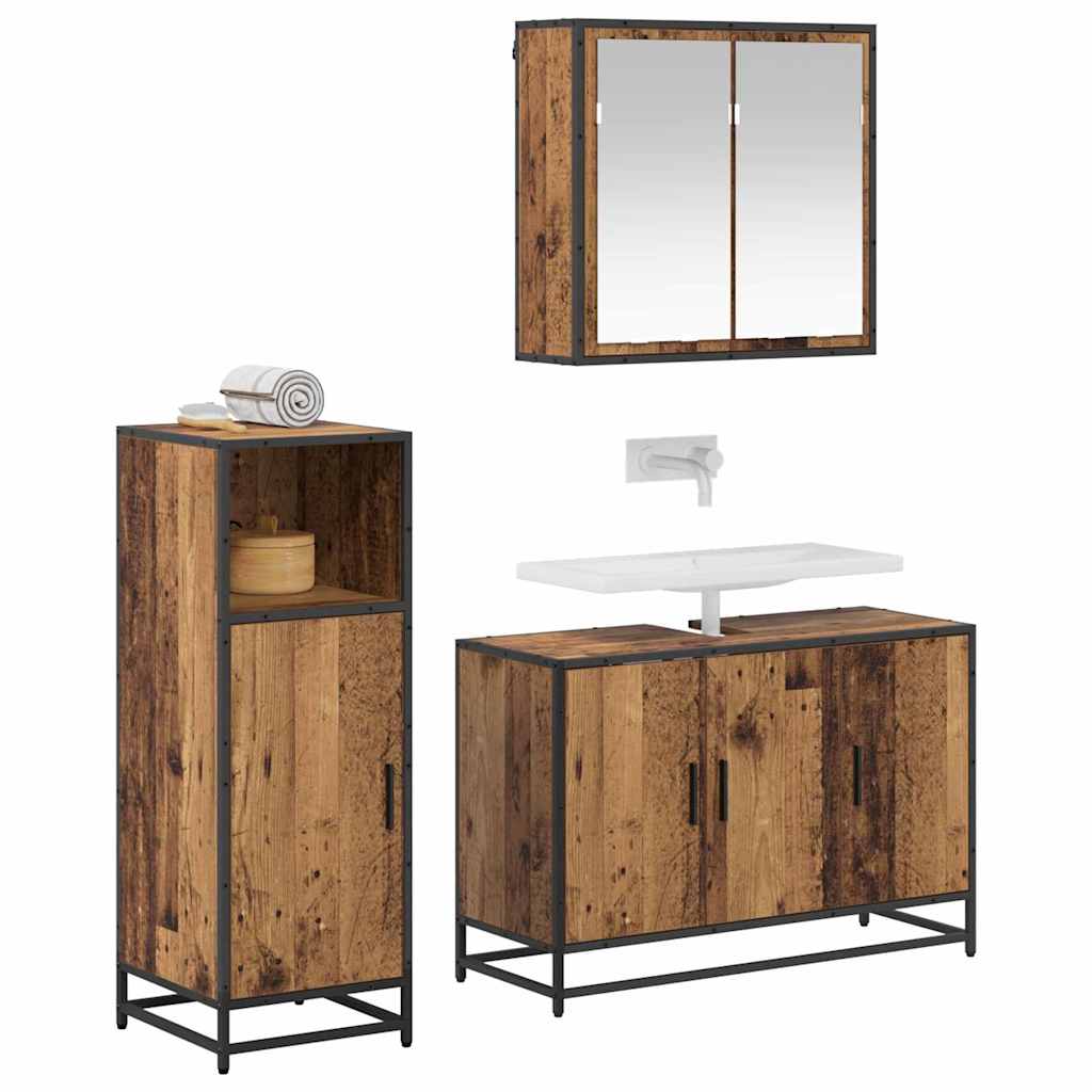 Set de mobilier pentru baie 3 pcs Lemn vechi 90 x 33 x 60 cm GartenMobel Dekor