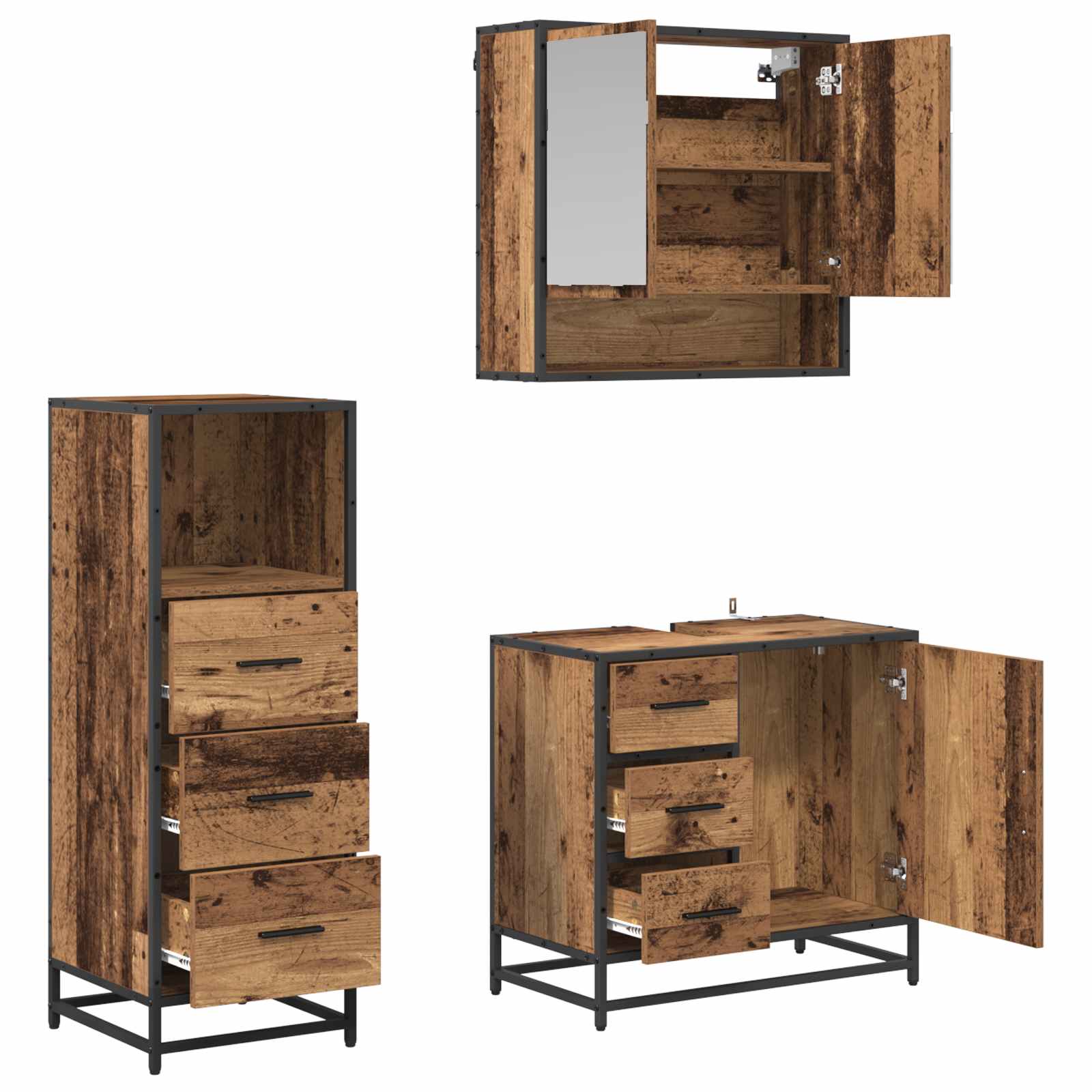 Set de mobilier pentru baie 3 pcs Lemn Vechi Lemn compozit GartenMobel Dekor