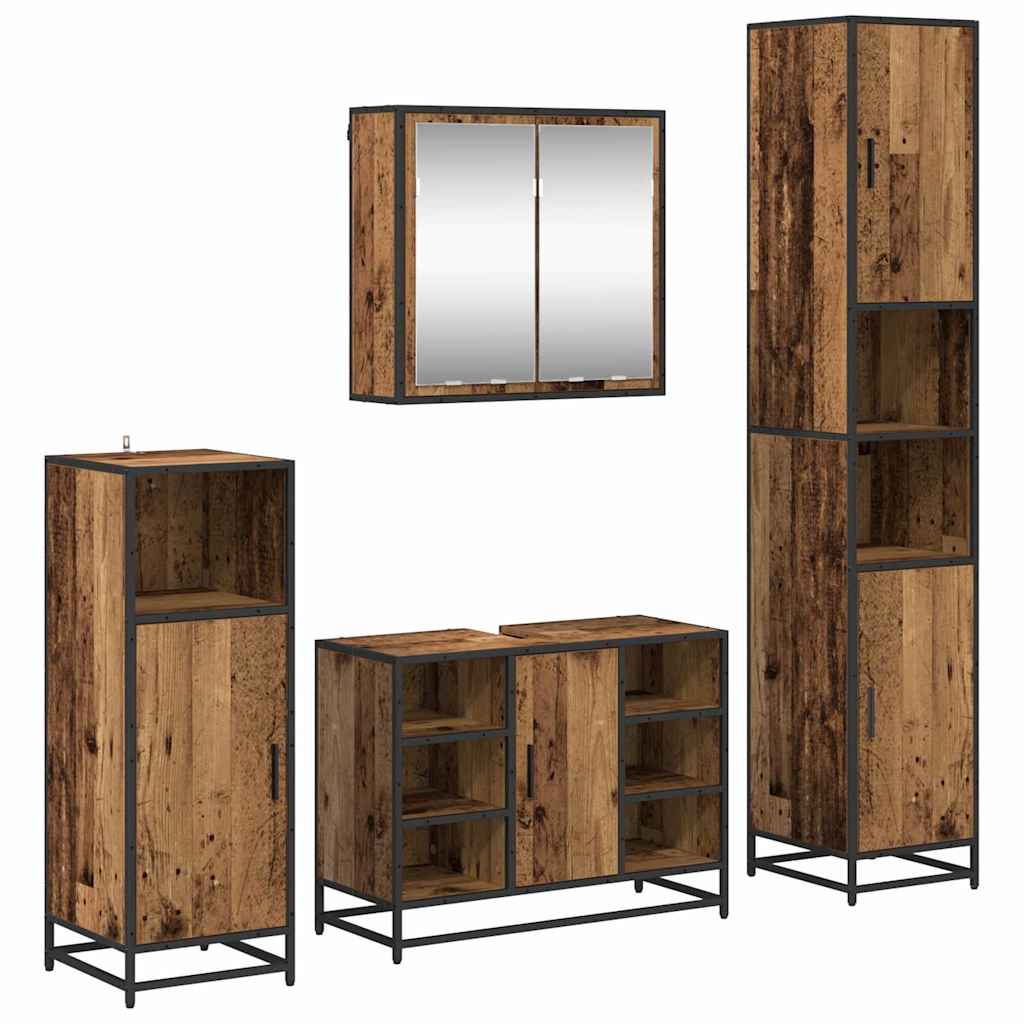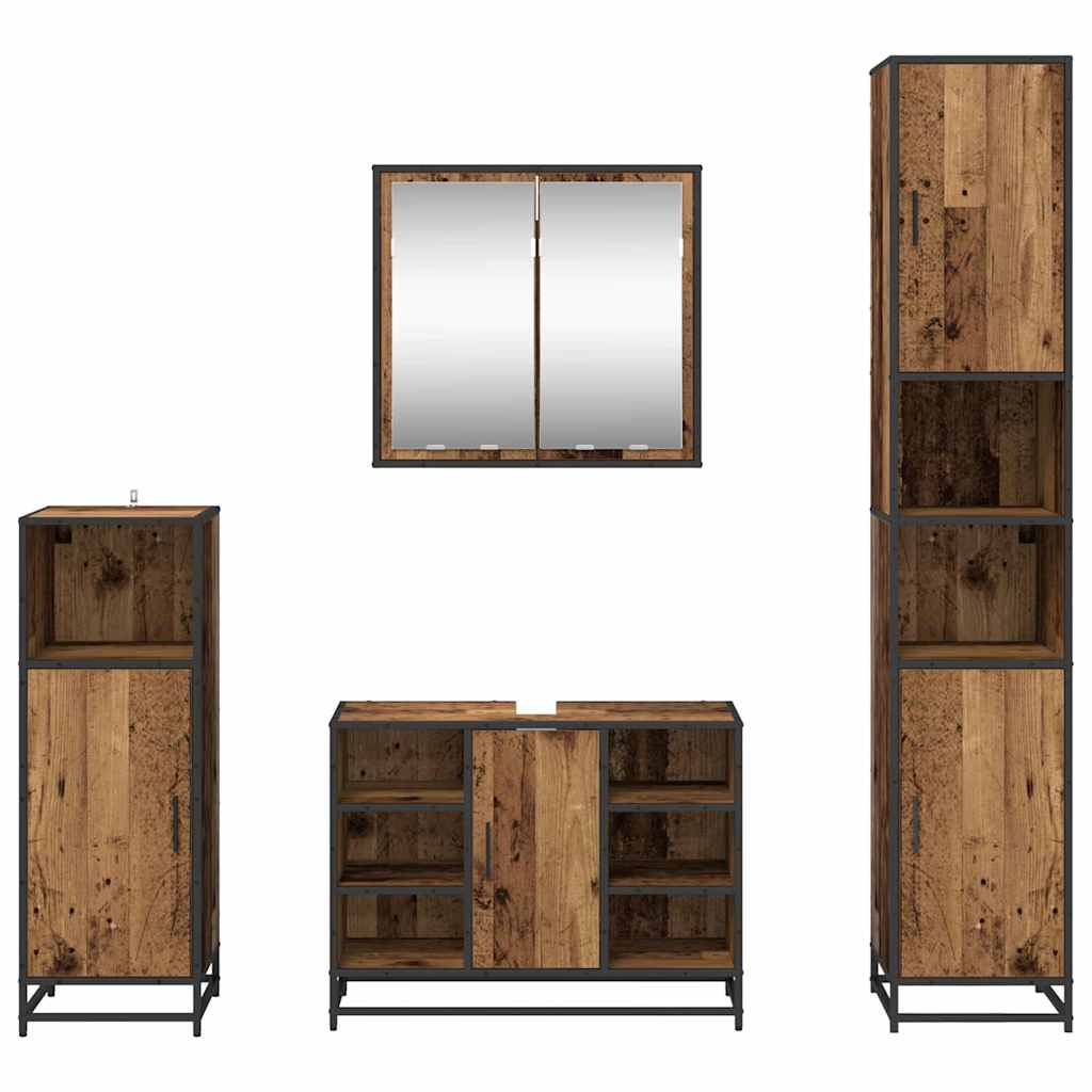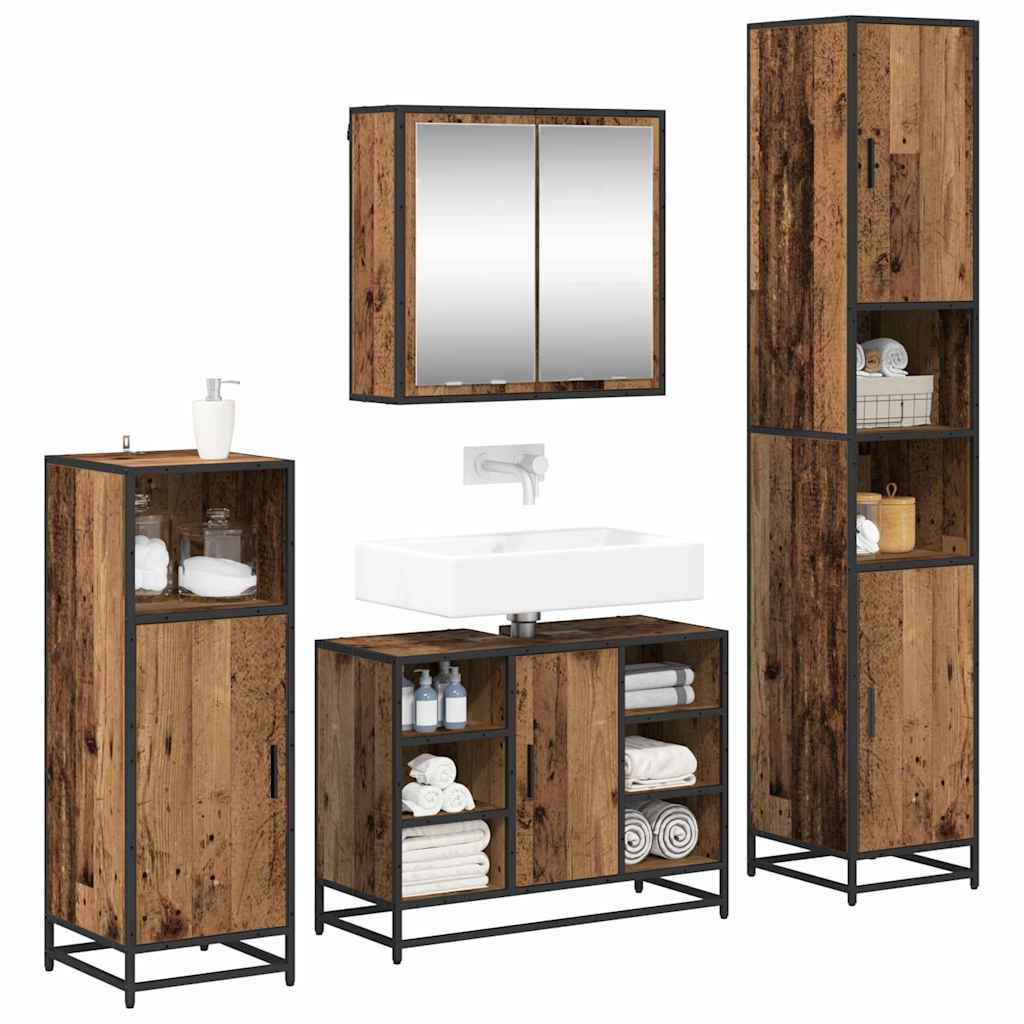 Set de mobilier pentru baie 4 pcs Lemn vechi 80 x 33 x 60 cm GartenMobel Dekor