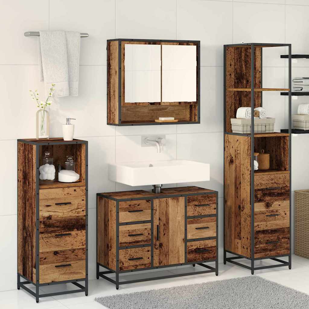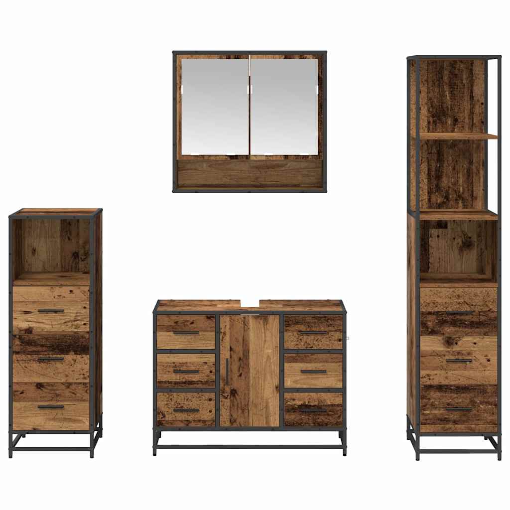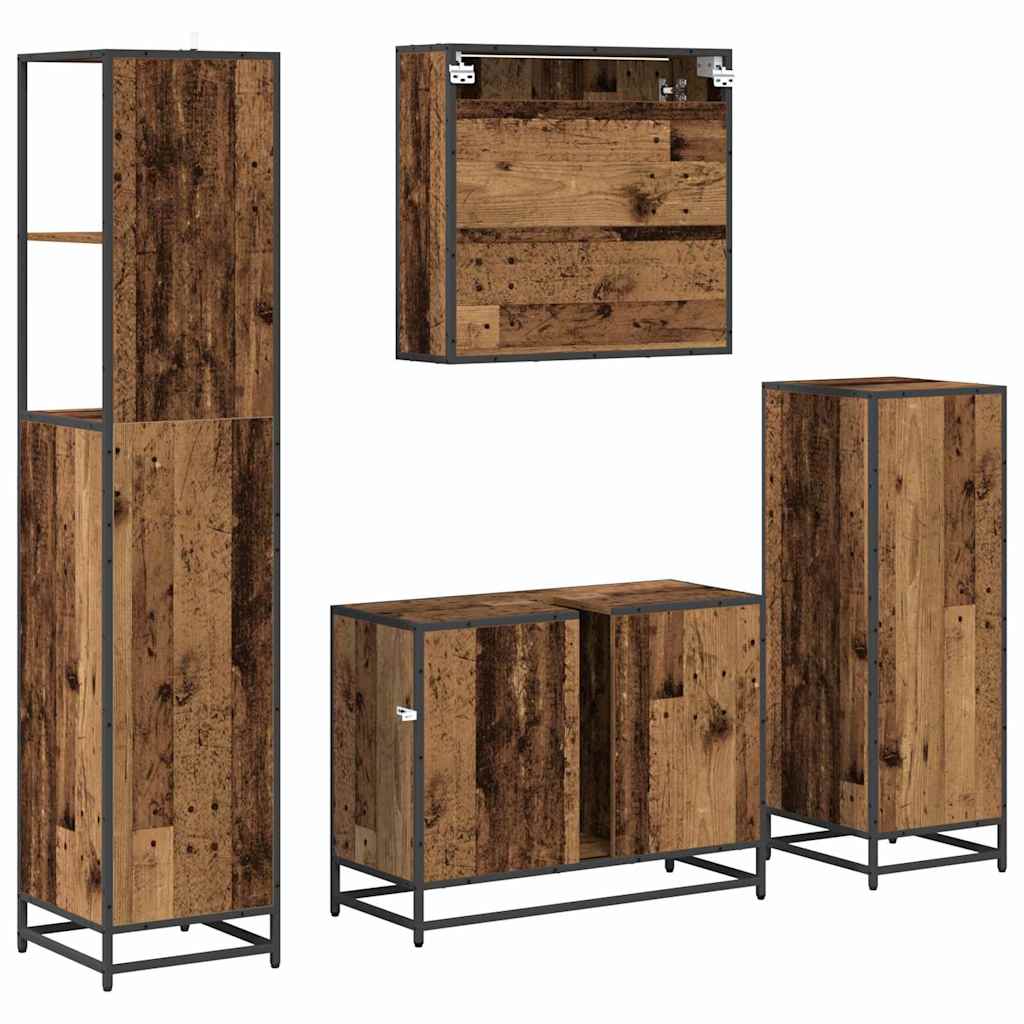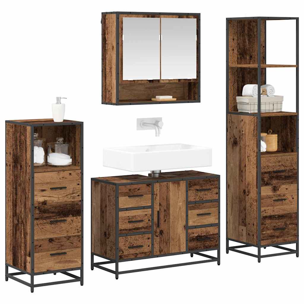 Set de mobilier pentru baie 4 pcs Lemn Vechi Lemn compozit GartenMobel Dekor
