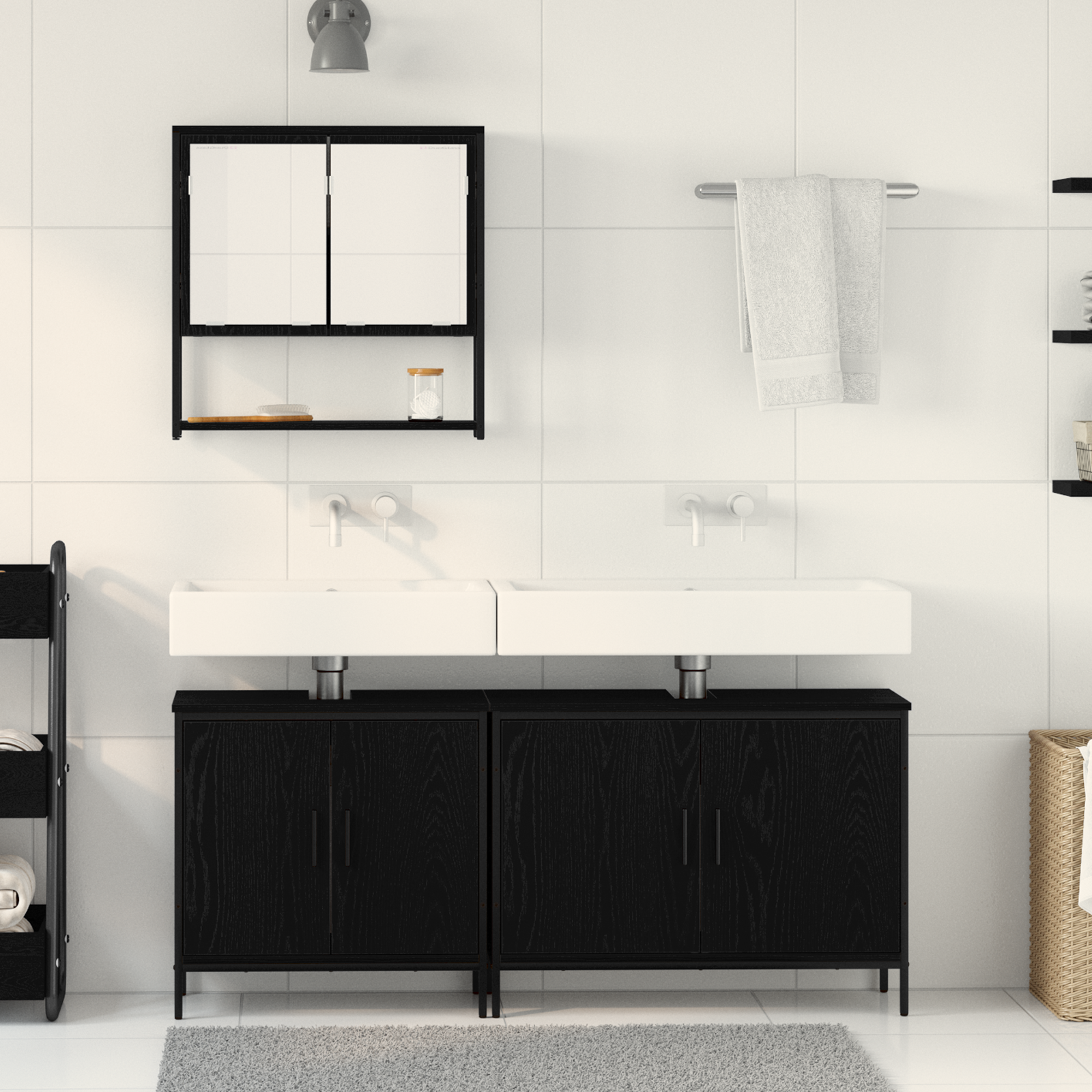 Set de mobilier pentru baie cu raft 3 pcs Negru Lemn compozit GartenMobel Dekor