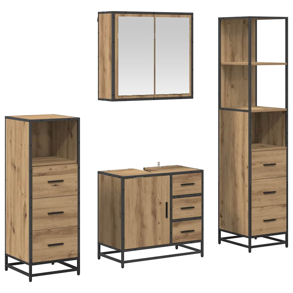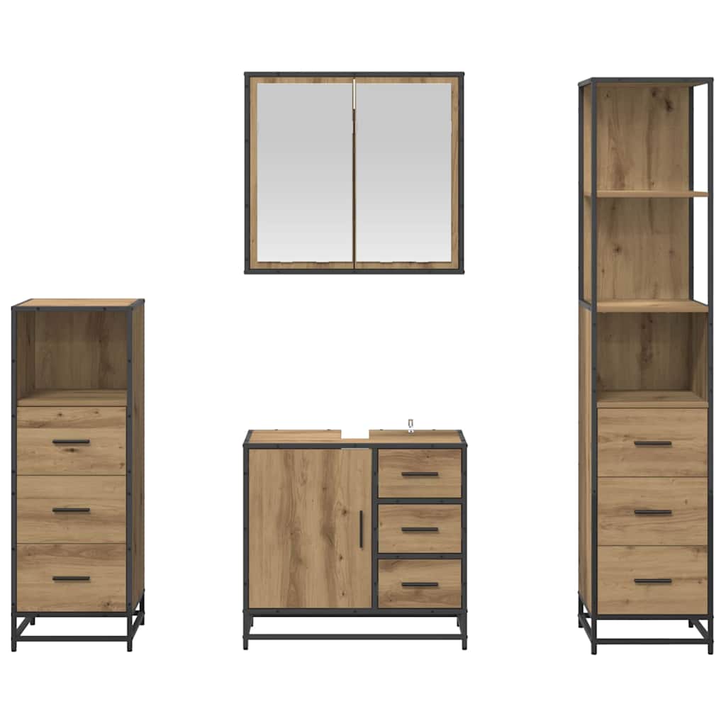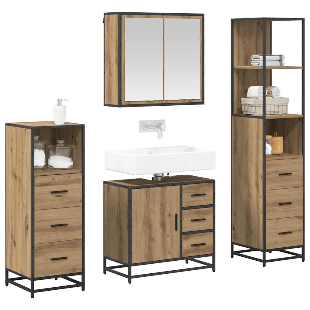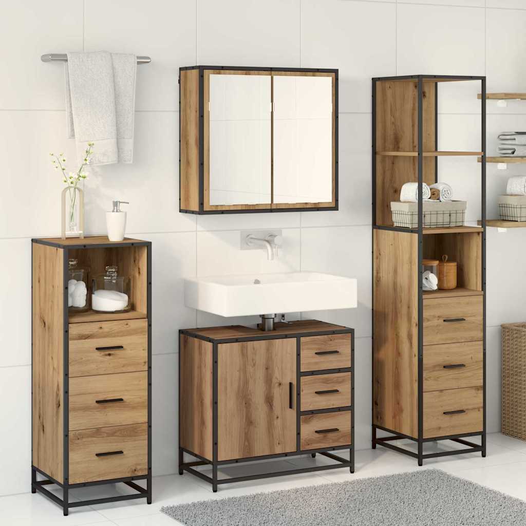 Set de mobilier pentru baie cu sertar 4 pcs stejar artizanal GartenMobel Dekor