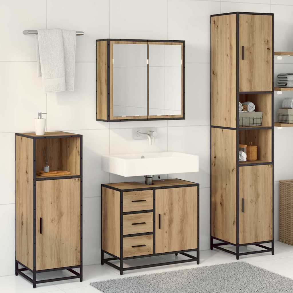 Set de mobilier pentru baie cu sertar 4 pcs Stejar Artizanal GartenMobel Dekor